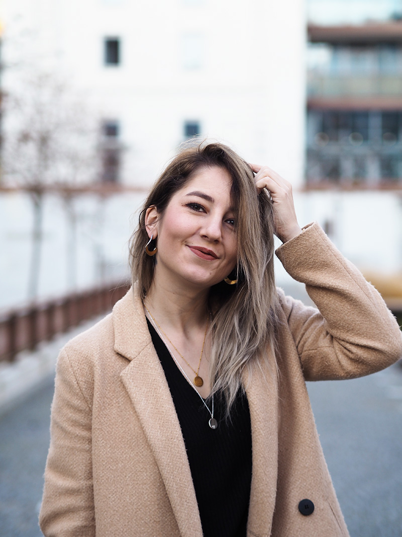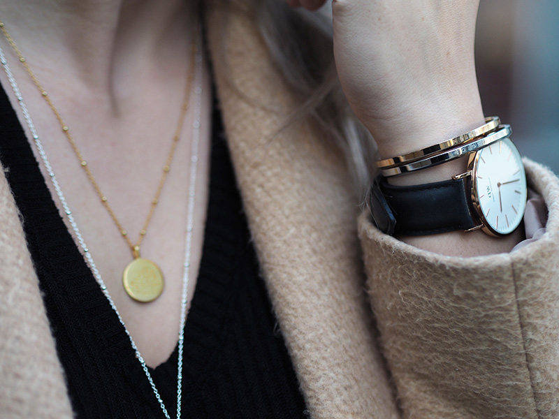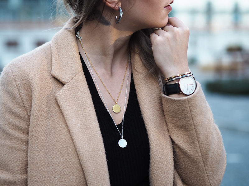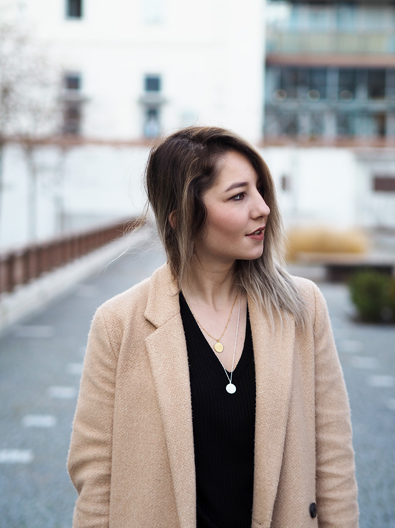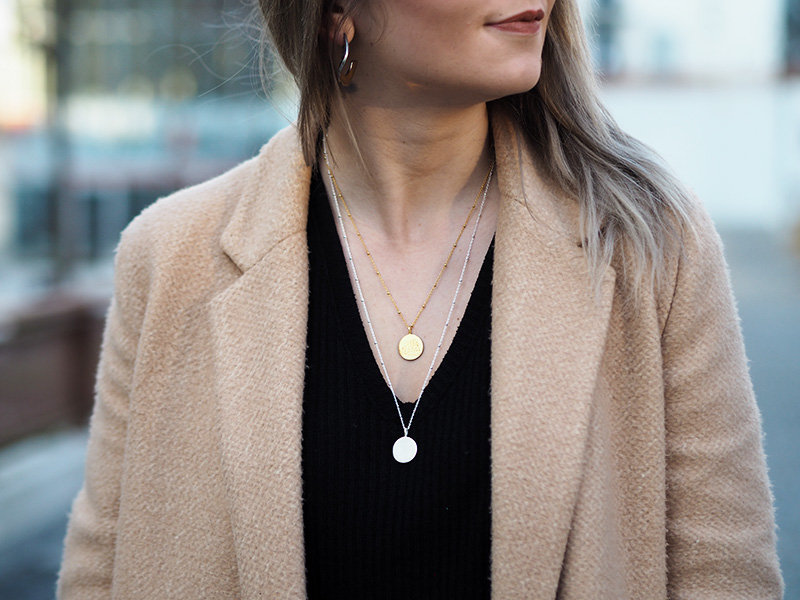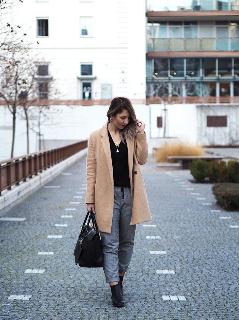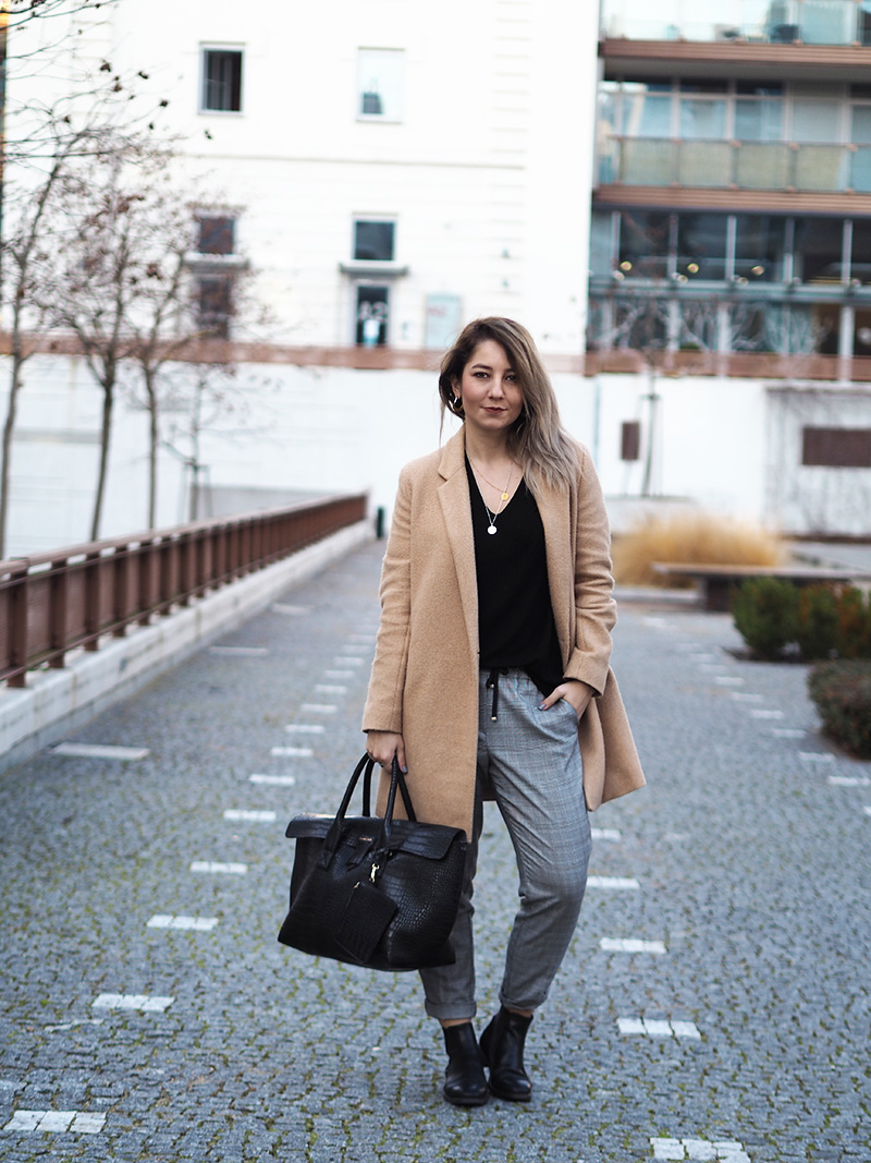 Kabát, triko – ZARA / kalhoty – RESERVED / boty – GANT / kabelka – POMIKAKI via FASHION PLANET / řetízky – MOOYYY / náušnice – CALVIN KLEIN