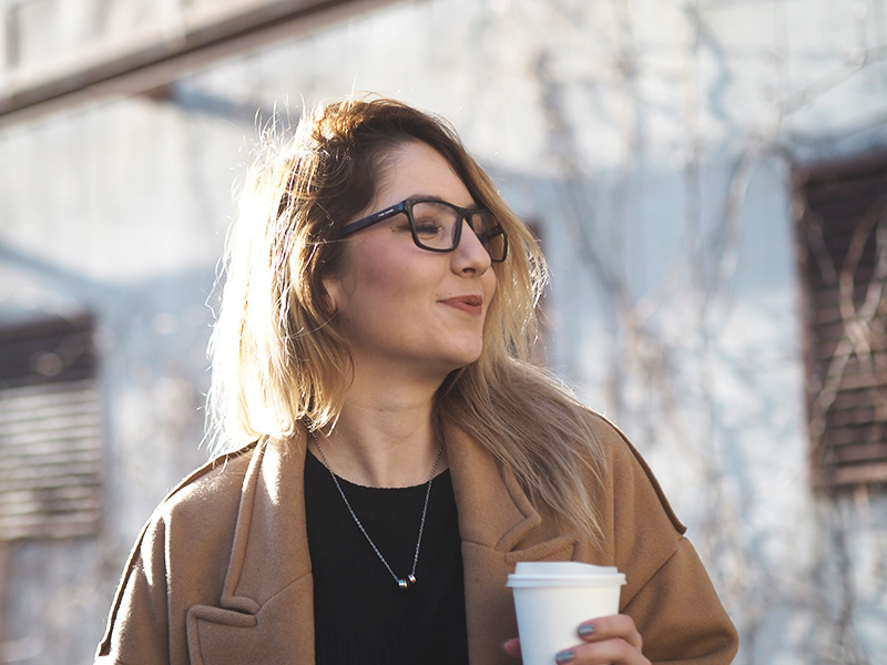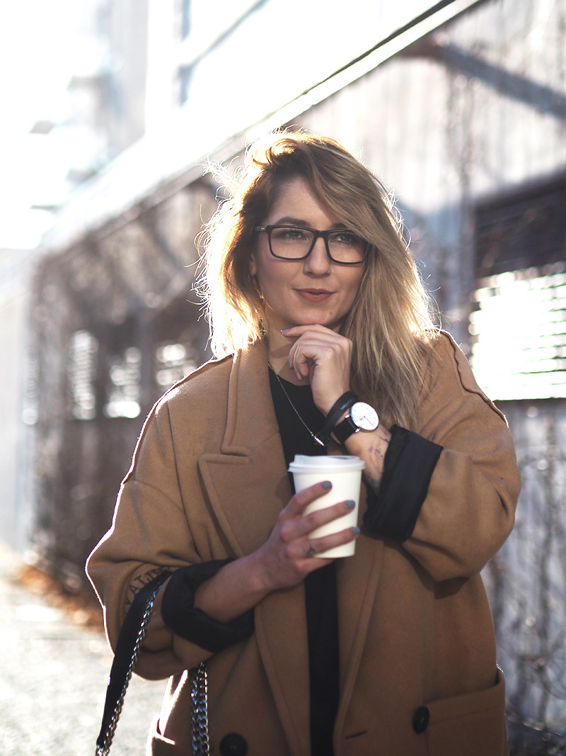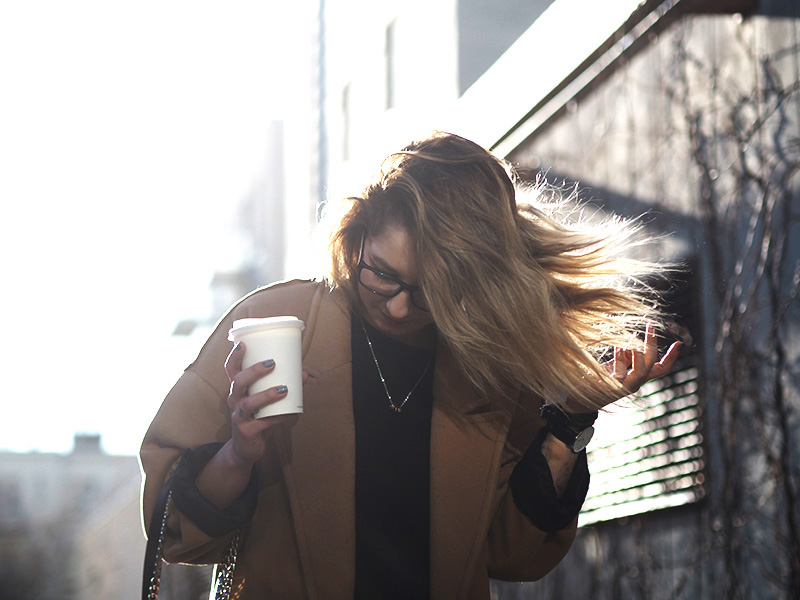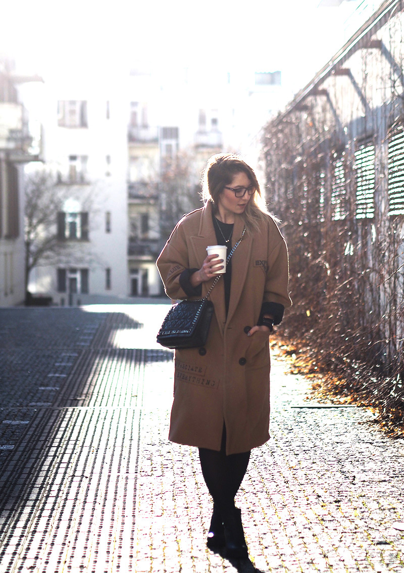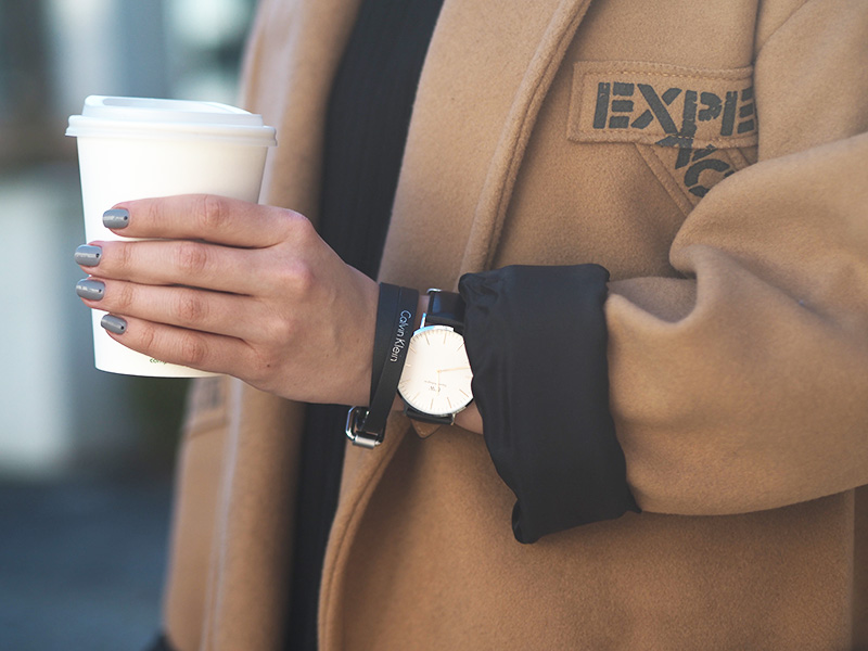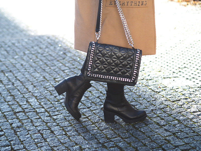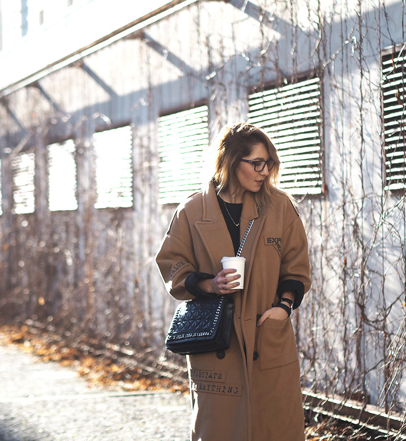 Kabát, šaty, kabelka – ZARA / boty – VAGABOND via ANSWEAR / hodinky – DANIEL WELLINGTON / šperky – CALVIN KLEIN / brýle – GRANDOPTICAL