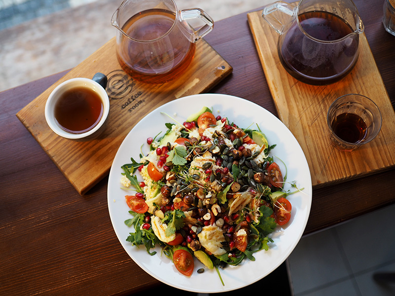 Nejlepší (!!!) snídaně z Coffee Roomu. Jednou jsem obětovala avotoast za vyzkoušení týhle novinky – talíře plnýho avokáda, hummusu, halloumi sýru, rajčat a dalších dobrot – a nejsem si uplně jistá, jestli si ještě někdy dám něco jinýho.