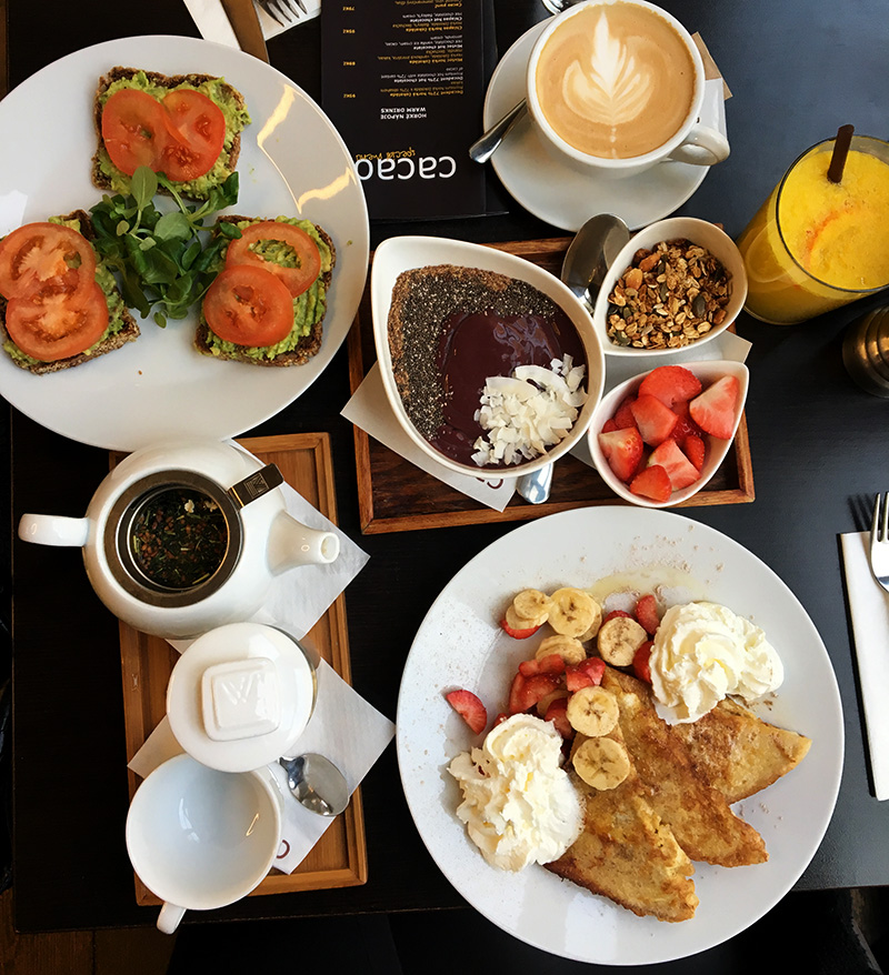 S Denčou v Cacau. Místo normální snídaně jsme ochutnaly snad polovičku menu a málem se nám to nevešlo na stůl. Ne že by to v mým případě bylo v Cacau něco neobvyklýho, podle mě by ty stoly měly bejt větší. 😀
