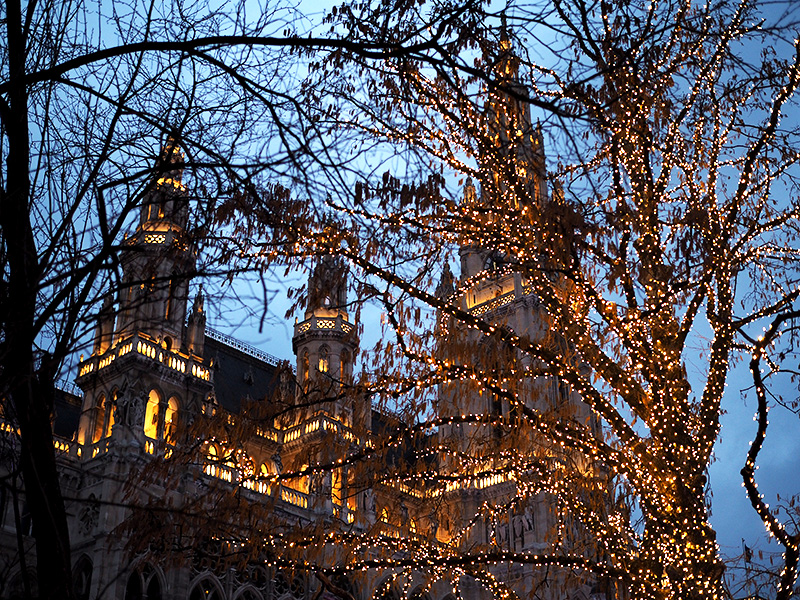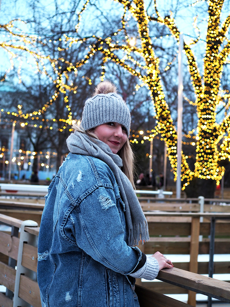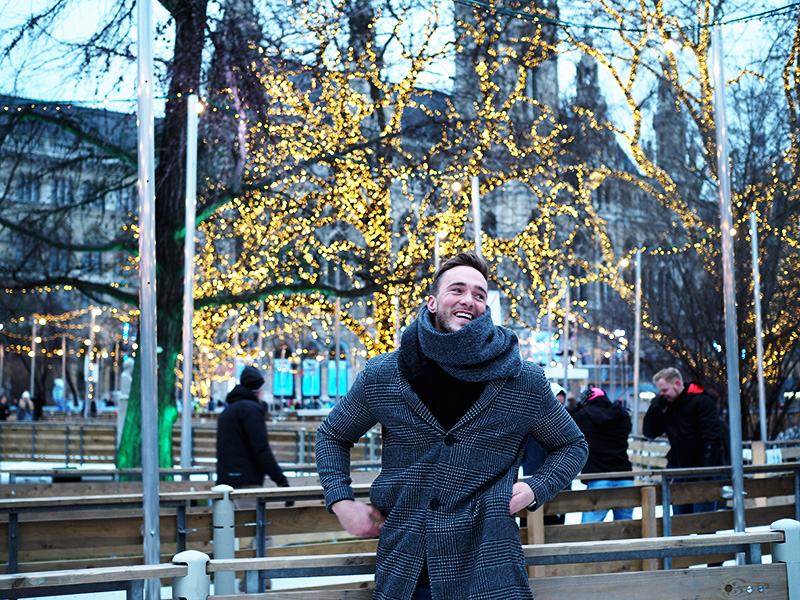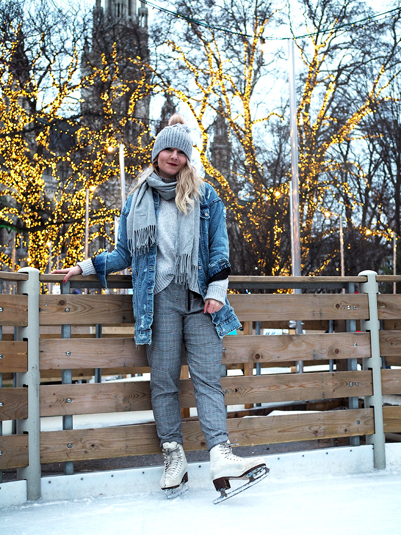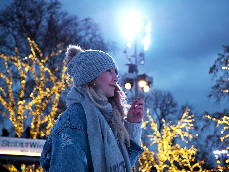 Jakmile se začne stmívat, zamíříme k Rathausu, před kterým najdete od ledna do začátku března to nejkouzelnější kluziště, jaký můžete kousek od Čech najít. Celá ledová plocha má – a to se podržte – 8000m2 a velká část je v uličkách mezi stromama. Všude jsou světýlka, nahlas tam hraje muzika a z přilehlých stánků se line jedna vůně přes druhou. Jen při cestě okolo se musím usmívat na plnou pusu a radostí si poskakuju. Při obouvání už se mnou šijou všichni čerti a se vstupem na led se tetelím radostí tak, že to nedokážu skrejvat. Vidím i to teď zpětně na všech těch fotkách.