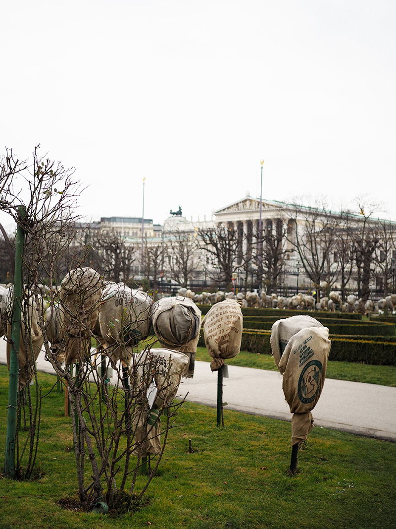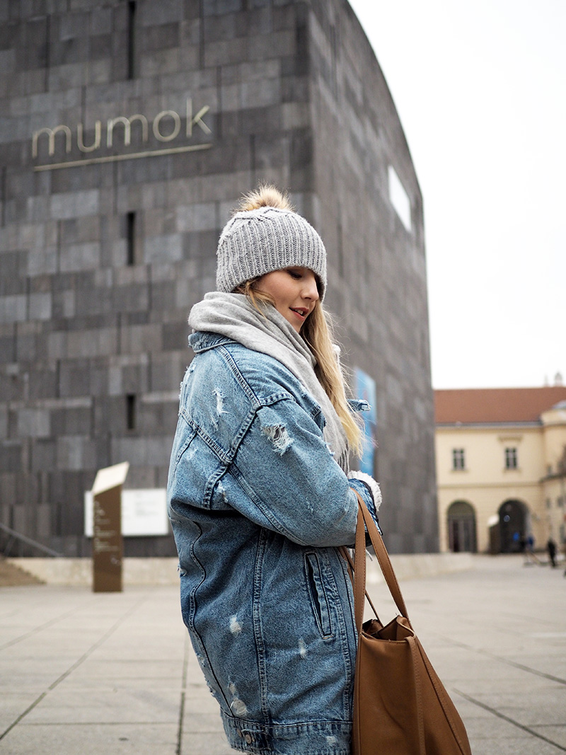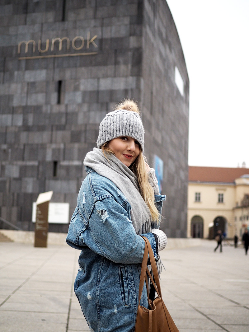 Kde jsou ty časy, kdy bylo plánování moje silná stránka. Výborný chleby s avokádem a vejcem nás naštěstí házej zpátky do pohody, hnusný kafe tomu zajímavýmu místu odpouštím a další na programu je moje oblíbená část Vídně – Muzeum Quartier. V létě je to tu plný lidí, co se válej na barevných lehátkách a má to neskutečnou atmosféru, ale ani teď v tý kose to není zahození. Obcházíme to tam celý dokola a objevujem krásný skrytý místa. Mě teď tak baví se koukat okolo sebe a třeba jen zkoumat linie budov.