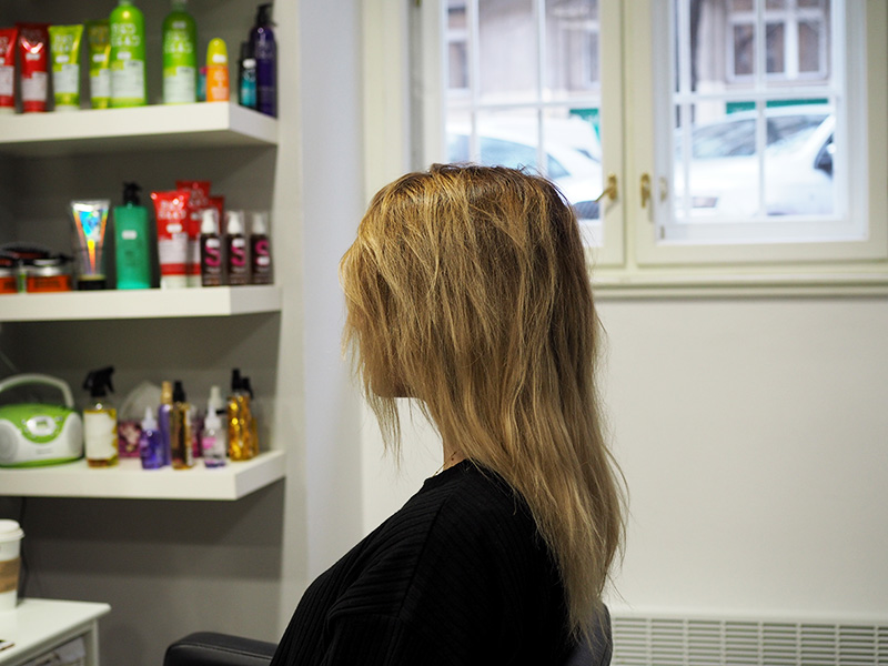Na fotce výš jsou vlasy měsíc odrostlý a klidně by ještě vydržely neposunutý. To je hodně individuální, někomu se to víc cuchá a když je odrost větší, mohou pásky odstávat a pod vrchní vrstou vlasů trošku vystupovat. Na fotce níž pak vidíte moje vlasy po sundání – uplně v pohodě, dokonce snad v lepším stavu, protože je nežehlím. Byl to šok, to uznávám, najednou to mít krátký a zdánlivě řídký. Stačilo si ale uvědomit, že těch 90g vlasů není jen v délkách, ale je i u hlavy a když se to dá pryč, je to prostě sakra rozdíl.
