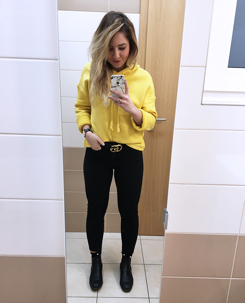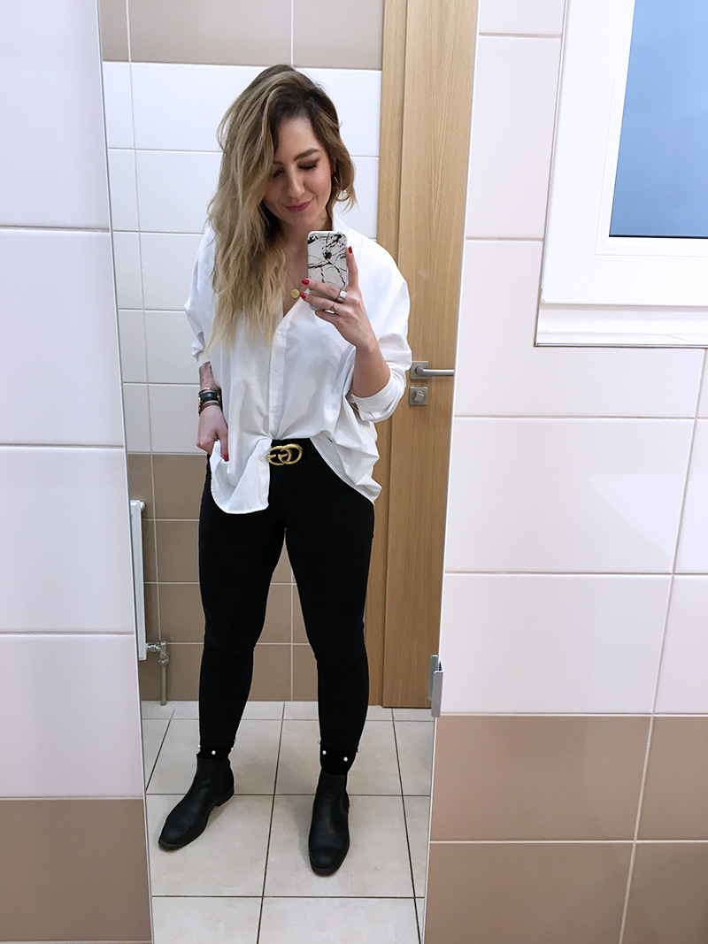 Outfitové zrcadlové okénko. Kdyby vás zajímalo, co je odkud, tak na Instagramu to mám všechno uložený ve výběru z příběhů s označenejma obchodama.