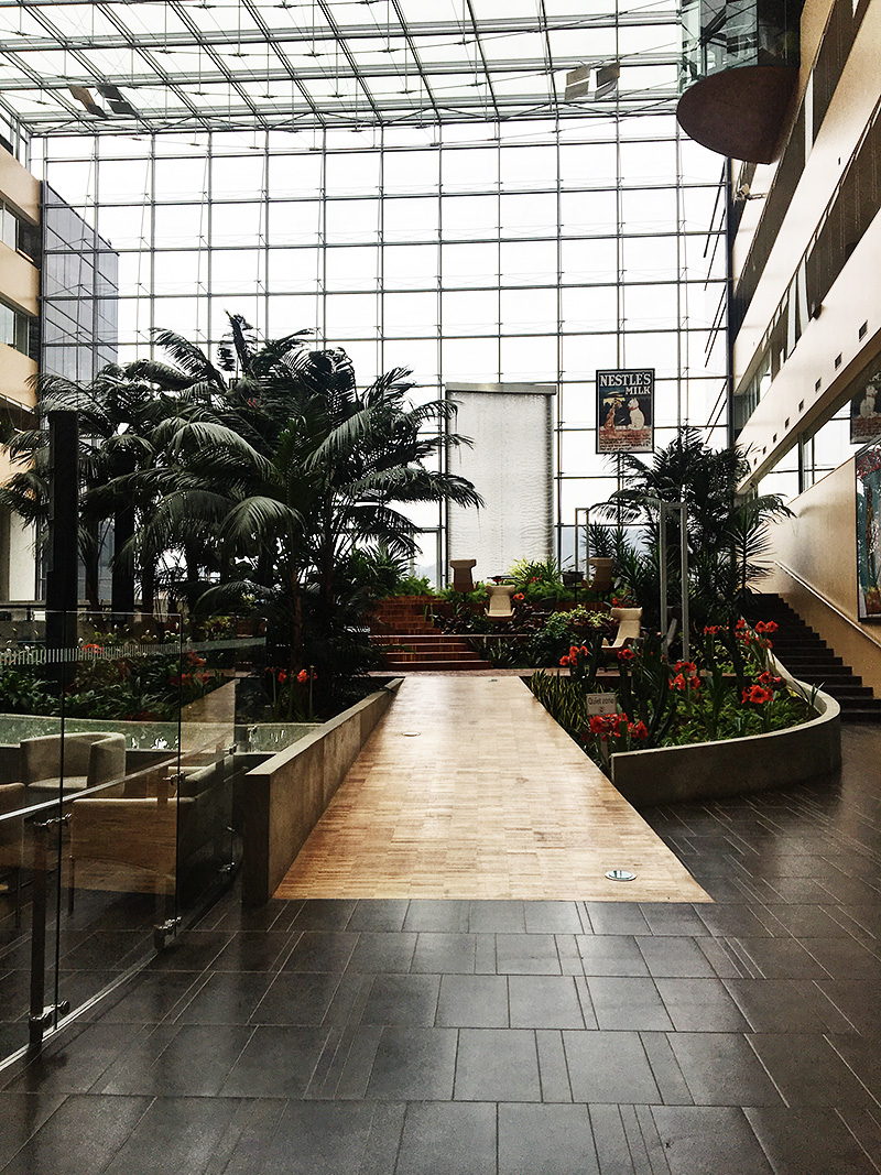 Díky práci jsem se taky podívala do budovy, kde sídlí Nestlé, kteří pod sebou mají spoustu značek sladkostí a každá potřebuje svojí marketingovou agenturu. Brada mi spadla až na zem hned u vchodu, kdy se před náma vyloupla tahle kouzelná klidová zóna. Jako dobrý no. 😀