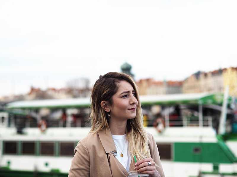 Tahle momentka naprosto přesně vyjadřuje pocit, když chci hezkou fotku s Prahou za zády a zrovna připluje ta nejzelenější loď ever.