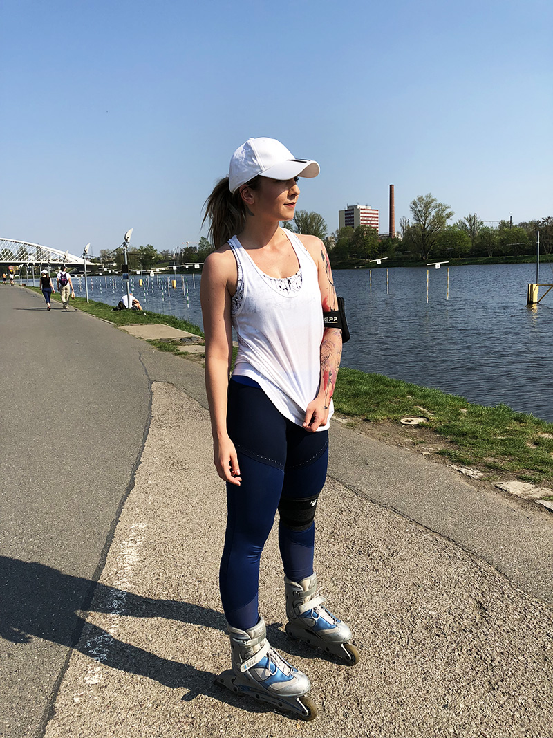 A moje oblíbená venkovní aktivita – brusle! Hrozně dlouho jsem měla problém, že mě z bruslení bolely uši a nosit ve vedrech čelenku prostě nebylo uplně ono, navíc mě bolely i tak a celkově mi to pak kazilo celej dojem, ale teď (ťukťuk na dřevo i na zuby) je to nějaký lepší a já jsem v poho. Takže bych najednou chodila bruslit pořád. ♥