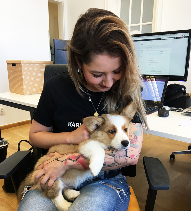 A taky máme občas takovou návštěvu. Když jsem tohohle kulíška dávala na stories, strhla se mi v directu uplná lavina zpráv! 😀 Nedivím se, sama jsem nechápala, že je něco tak roztomilýho živý a nemohla jsem přestat šišlat. Rasa je Corgi, mimochodem. 🙂