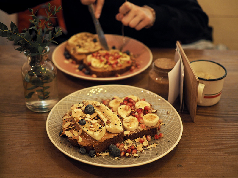 A bylo nám dobře. Daly jsme si steak v Mikrofarmě a potom Cafefinovej banánovej chleba s burákovým máslem, kterej se podle mě nedá vůbec sníst. Jeden kousek mi pak zbyl na snídani a bylo to opravdu top. Fakt fakt fakt jo.