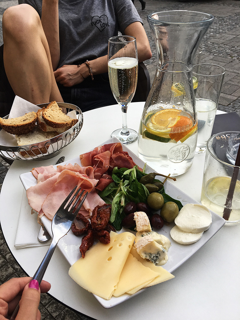 Zahrádka v Cacau je v tomhle horku dost často naše útočiště. Něco na zub, jablečno-citronovo-zázvorovej fresh a ideálně ještě Hugo Spritz. To jó! ♥