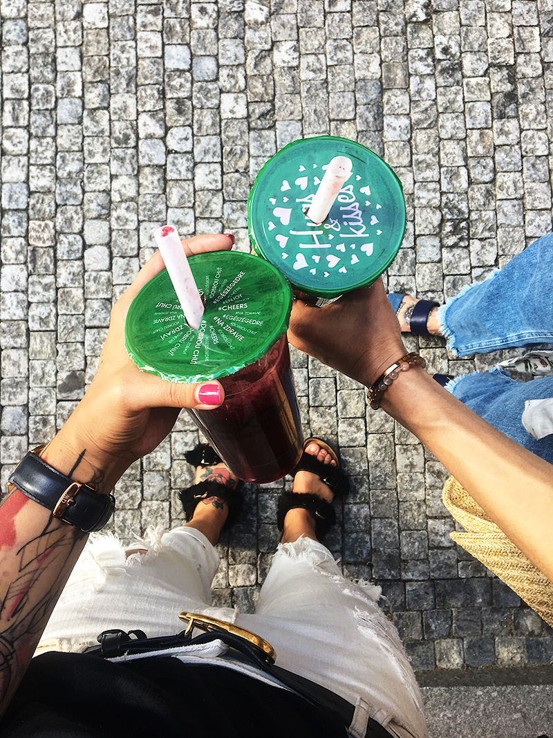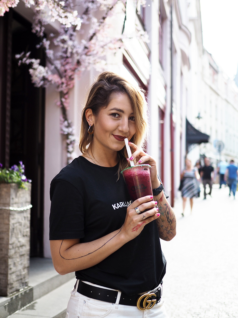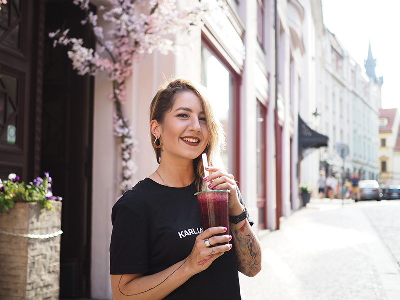 Nově objevenou dobrotou je pro mě Oxotea. V dobách Bubbleology jsem tomu odolávala, přišlo mi to cílený na děti a přestože mě praskající kuličky a tapioka bavily, nějak jsem ty sladký pitíčka konzumovat nechtěla. Teď je to ale uplně jiná písnička. Alex mě totiž naučila na variantu zelenýho čaje s rozmixovaným mraženým ovocem. Neslazený, samozřejmě. Bez sirupu, bez jakejchkoliv přísad. Akorát tý tapioce teda neodolám, ale nechávám si ji ještě předem propláchnout ve vodě. Schválně zkuste, kombinace zelenýho čaje a lesních plodů s acai je uplně top.