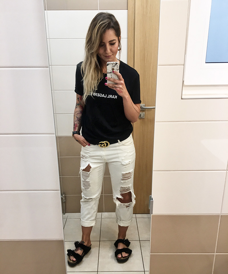 Outfitové okénko nemůže chybět ani v květnu. Je ale o dost chudší než dřív, protože jsme přestěhovaní do patra, kde je jiná koupelna a nedá se tam fotit. Takže občas seběhnu za kolegama o patro níž, ale denně to dělat nemůžu, žejo. 😀