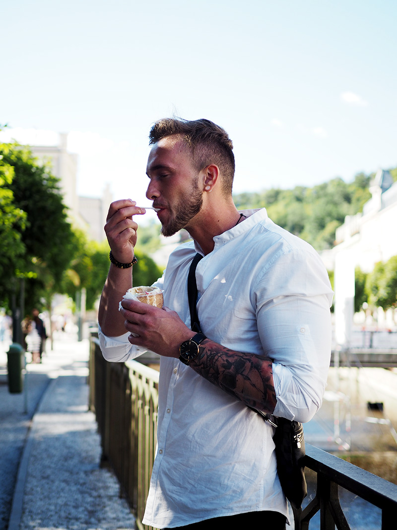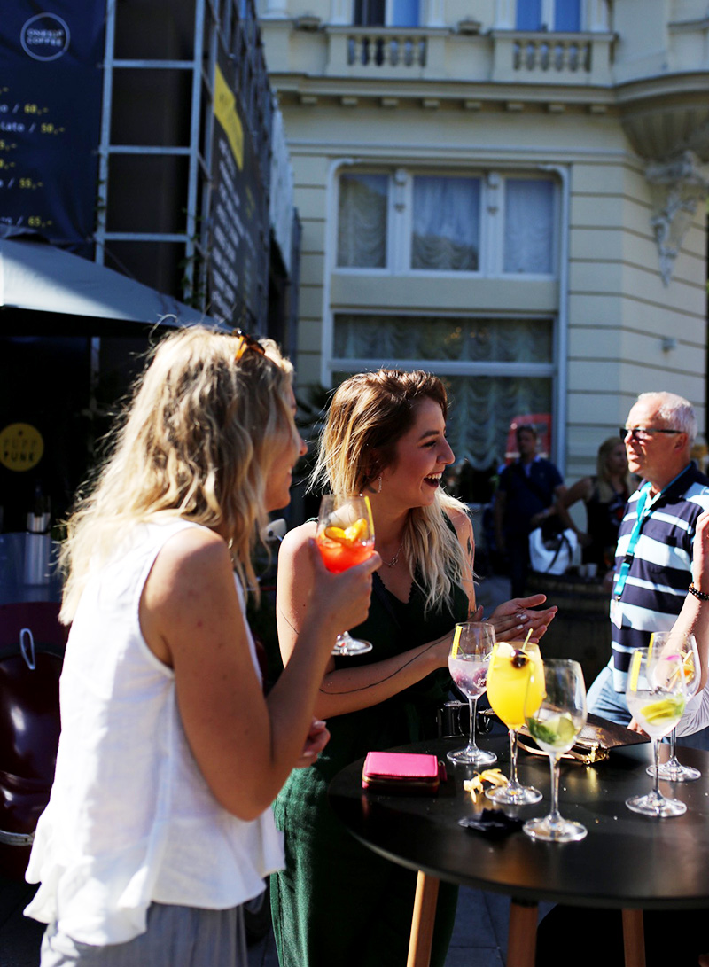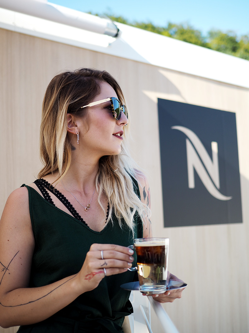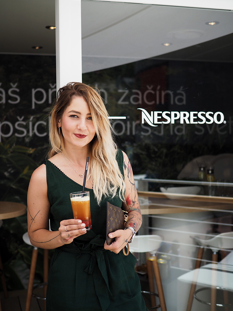 Tak trochu s křížkem po funuse? Jo, jsem si toho vědoma. I tak mi to ale nezabrání se ještě, o pár dní později, než by bylo ideální, ohlédnout zpátky do toho známýho města na kraji republiky, kam se pravidelně sjíždí “smetánka” z Prahy. Jak moc jsou ty uvozovky na místě si asi řekněte sami, haha. Znáte mě, já se občas hrozně ráda cejtím jako princezna a užiju si trochu luxusu, líběj se mi vyšperkovaný hotely, miluju drahý jídlo i oblečení. I ty boty na podpatku doma nějaký mám a to že je mám jen vystavený je nepodstatná informace, ale mnohem líp se cítím tam, kde můžu být uvolněná, na židli sedět v tureckým sedu a bez přemýšlení, jestli se to hodí nebo ne. Miluju sedět na zemi, když jsou všichni ostatní na gauči, miluju rozcuchaný vlasy smotaný do drdolu nebo nerozčesaný rozpuštěný háro, zmačkanou košili vytaženou zpoza pásku, kafe místo snídaně, když nestíhám a i to, jak pořád hledám sluneční brejle, telefon nebo čip od kanceláře. Jsem to já, neorganizovaná, ve spěchu a furt hladová – akorát ne jen po jídle, ale i po zážitcích a zkušenostech. A přesně proto pořád kývám na všechny nabídky, co se přede mnou otevíraj. A přesně proto jsem i letos vyrazila v rámci kampaně s Nespressem do Varů, přestože vím, že přesně tenhle typ akce je všechno, jen ne ten můj typ akce. Můj typ totiž rozhodně nejsou akce, na který se většina lidí přijde ukázat, kde má 99% lidí nos nahoru a hrajou si na něco, co vůbec nejsou, kde jde hlavně o to, co máte na sobě nebo jestli vám i po všem tom jídle drží rtěnka ani akce, kde se každej nejdřív fotí a pak až prožívá (spíš to ale ani nestihne). Věděla jsem, že po jednom dni ve Varech mě čeká několik dní na hudebním festivale, takže se to krásně vyváží. A vyvážilo, s holkama a s Kubou jsme si Vary strašně užili. Vypili jsme litry kafe – kombinace s ovocnými sirupy nebo alkoholem se totiž shledaly s velkým úspěchem, prochodili jsme Kolonádu křížem krážem, nafotili spoustu fotek a během toho si to stihli doopravdy užít. Nelítali jsme z filmu na film, neopili jsme se v žádným párty stanu po boku celebrit, neměli jsme napůjčovaný outfity od návrhářů a nefotili se na červeným koberci. Strávili jsme tam jeden den, udělali si to hezký podle sebe a vrátili se zase dom.