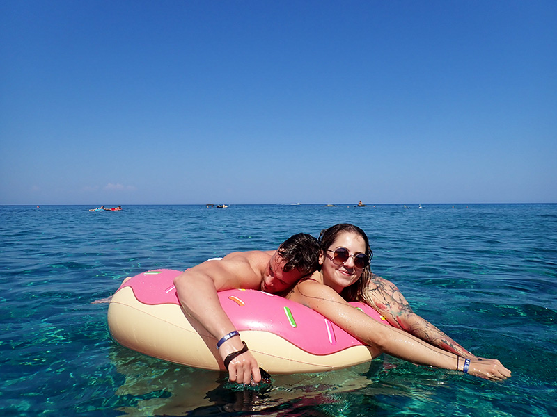 No a čtvrtou velkou věcí v červenci je dovolená u moře. Právě se s našima a s Kubou nacházíme na Rhodosu, kde máme vlastně nejspíš o trochu příjemnější teploty, než vy v ČR. A navíc se celý dny mácháme v moři na nafukovacím donutu. Ale o celým tomhle týdnu, kterej se nám dnes překlápí do druhý poloviny, vám povím v samostatným článku. Zatím jen ukázka toho, jak se tu máme a budu se tady na vás těšit zase příště.