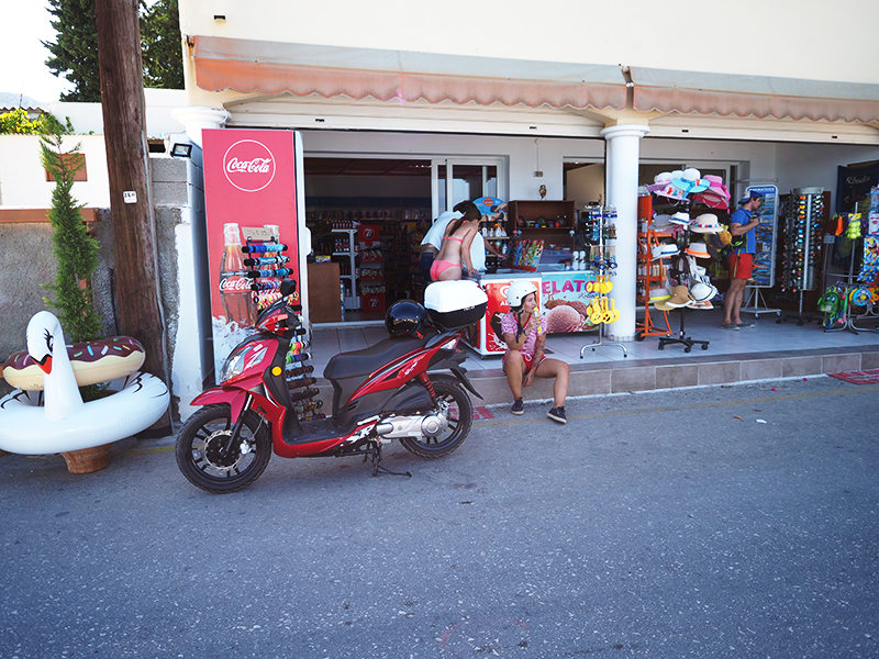 Abychom se k těm vodním skútrům nějak dostali, museli jsme si taky půjčit motorku. Respektive skútr, akorát zrovna neměli Vespu a tak nám dali tuhle sportovnější variantu, na který jsem si připadala hrozně drsně.