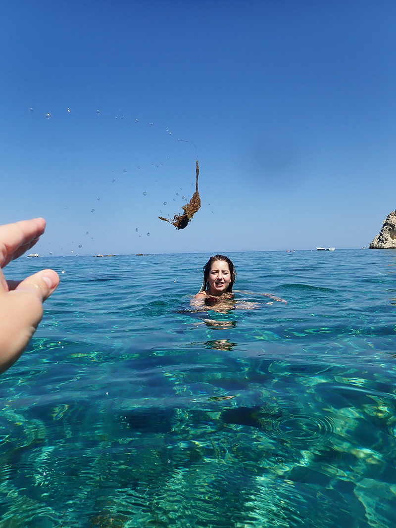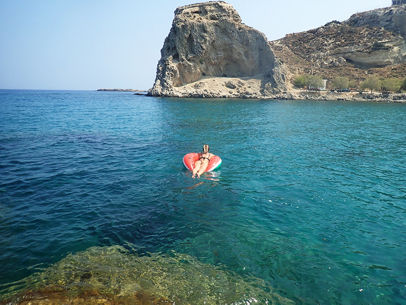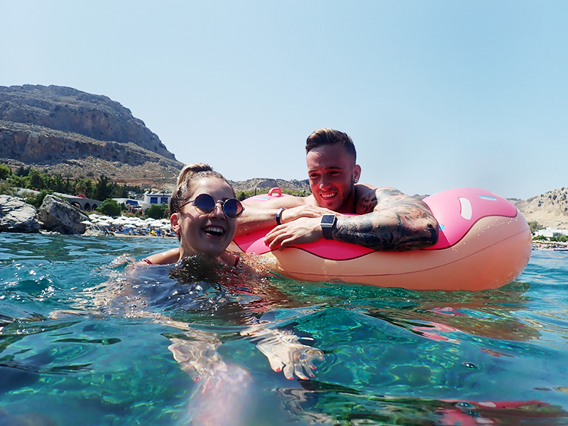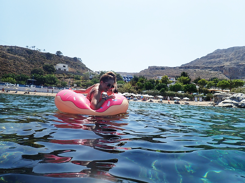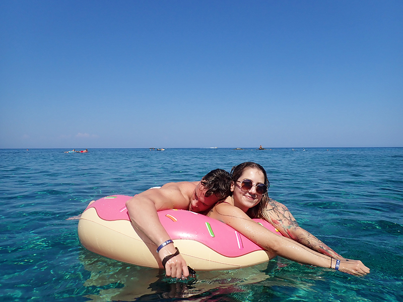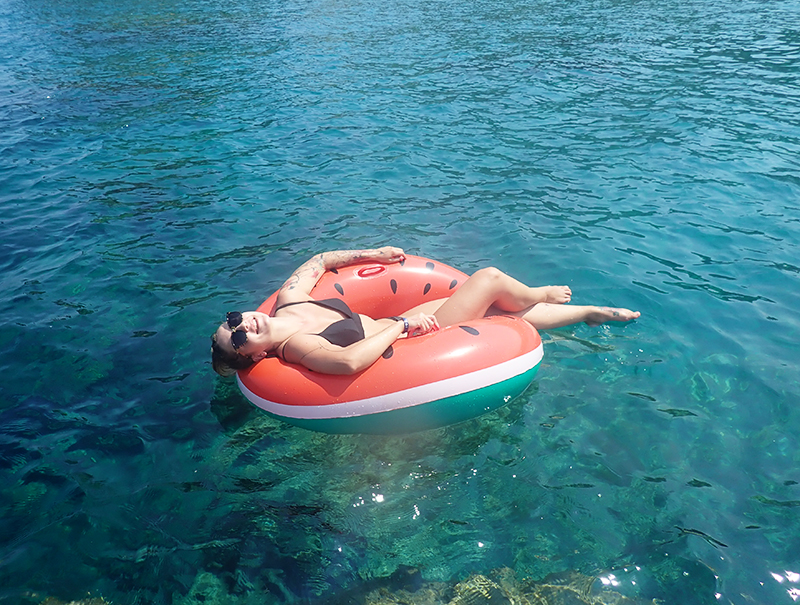 Hned druhej den jsme si pořídili nafukovací donut, abychom se mohli opalovat na vodě. Po dvou dnech se nám ho podařilo prasknout a a tak jsme šli rovnou pro další. Kuba půl dovolený bojoval za to, abychom si pořídili jednorožce nebo něco podobnýho, ale když nás to i na donutu během chvilky odfouklo na volný moře a my připádlovali zpátky uplně vyřízení, naštěstí si to rozmyslel.