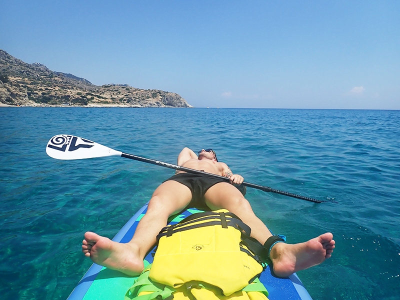 Chill nejvyššího stupně. Tohle bylo naprosto skvělý. Na tyhle paddleboardy jsem dostala tip na Instagramu a opět musím ocenit, jak skvělý sledující mám. Paddly byly totiž obrovský a bohatě nám tak stačil jeden dohromady. Takže vždycky chvíli jeden pádloval a druhej se opaloval. Asi vám ani nebudu zkoušet tvrdit, že jsme se střídali spravedlivě…