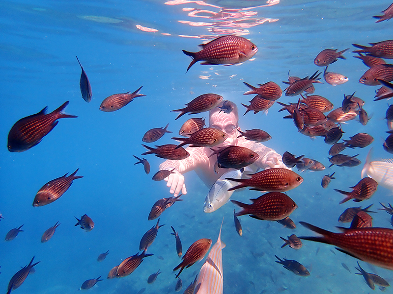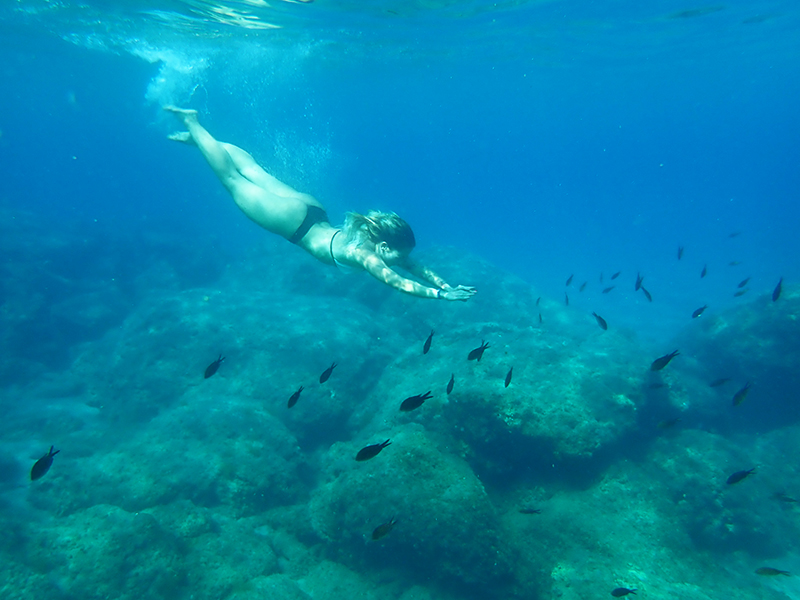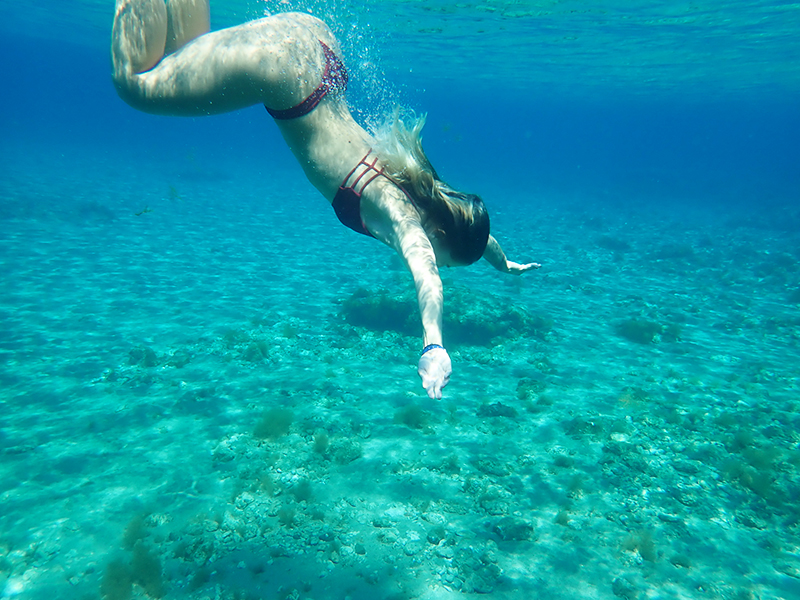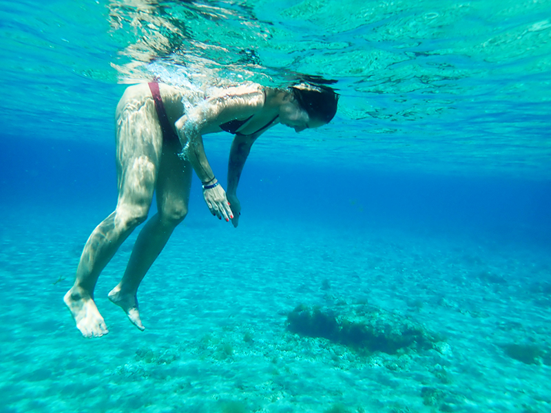A my jsme fotili, fotili a fotili. Nad vodou i pod vodou. Nakonec jsem na to totiž kápli a povedlo se nám několik ucházejících fotek. Když jsem pak uplně poslední den přišla na to, že jsem nemusela fotit na automat, ale že má foťák režim přímo na podvodní focení, málem jsem si nafackovala. Tím spíš, když jsem viděla výsledný fotky, který vy uvidíte na konci článku. Vůbec se to totiž nedá srovnávat. 😀