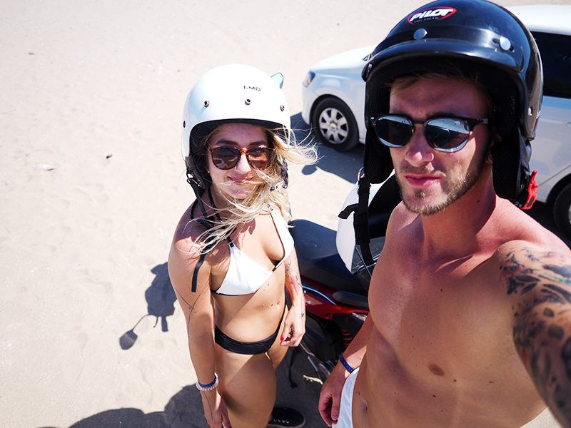 A i když to byl skoro celej tejden válení na pláži nebo na nafukovačkách, zvládli jsme tam s Kubou zakomponovat i pár aktivit. Po neskutečným zážitků na skútrech dva roky zpátky (článek kdyžtak TADY), jsme chtěli na skútr znova. Srovnávat se to sice vůbec nedalo, ale sranda to byla a adrenalin jsem měla vyplavenej třeba na tři dny dopředu si myslim. Už při první rovince jsem totiž Kubovi ječela do ucha, ať mě vrátí zpátky na břeh a jezdí sám. 😀