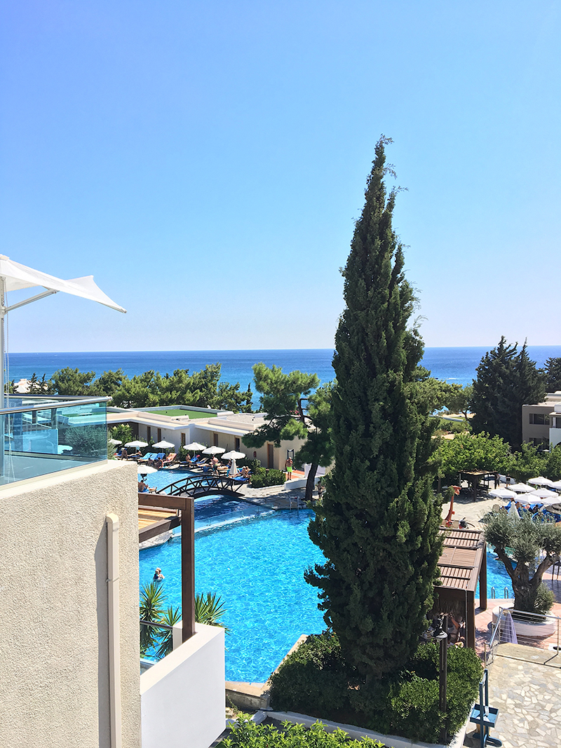 Oba lety jsme měli noční, takže jsme po příjezdu na hotel vůbec nevěděli, co nás bude ráno čekat. Respektive naši to samozřejmě věděli, protože hotel vybírali podle fotek a doporučení od známých, ale já jsem díky pracovní vytíženosti neměla čas si to předem prohlídnout a tak jsem neměla žádný očekávání. Když jsem pak ráno rozhrnula záclony a viděla tohle, chtělo se mi skoro brečet radostí. Dokonalost.