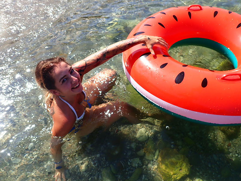 Hned druhej den jsme si pořídili nafukovací donut, abychom se mohli opalovat na vodě. Po dvou dnech se nám ho podařilo prasknout a a tak jsme šli rovnou pro další. Kuba půl dovolený bojoval za to, abychom si pořídili jednorožce nebo něco podobnýho, ale když nás to i na donutu během chvilky odfouklo na volný moře a my připádlovali zpátky uplně vyřízení, naštěstí si to rozmyslel.