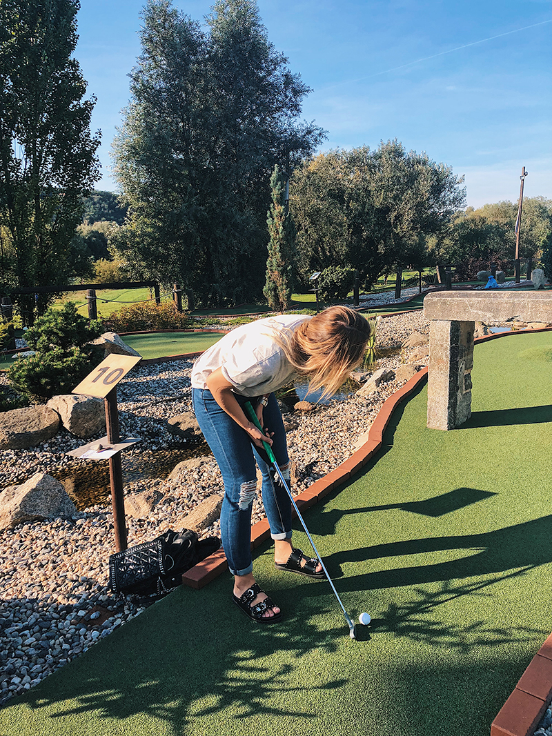 Minigolfista v akci. Nešlo mi to a prohrála jsem, jak jinak. 😀