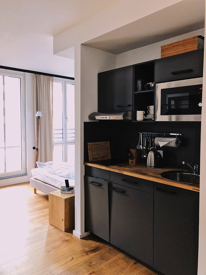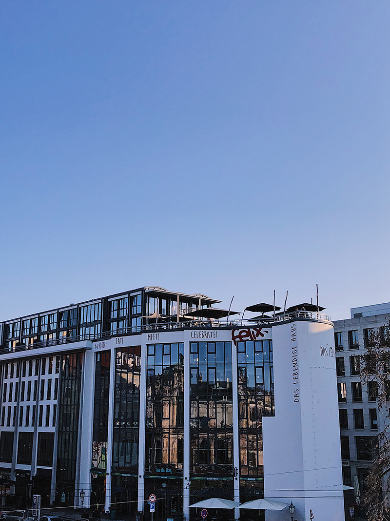 Na bookingu seženete celkem v klidu ubytování i dva dny předem. Jestli vám můžu doporučit konkrétní místo, tak jednoznačně Das Lebendige Haus. Supermoderní hotel přímo v centru, pár kroků od trhů a s výhledem na jednu z ikon Drážďan – Zwinger. Pokoje přesně takový, jakej bych si přála byt a vůbec nekecám, když řeknu, že mi to nasadilo hodně velkýho brouka do hlavy a už řeším, jak zakomponuju do svýho novýho bytu víc černý barvy v interiéru. Užít si tam můžete taky vyhřívanou terasu, restauraci a ve stejný budově se nachází i John Reed Fitness, kdybyste náhodou nevydrželi bez tréninku.
