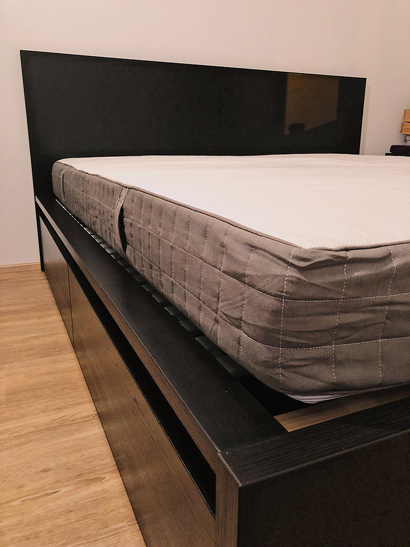 No ale ne vždy se všechno montování zadařilo podle plánu. Třeba postel se uplně nepodařila a to jsem na ní pracovala až do půl druhý ráno, dvakrát na mě přišli sousedi a já nakonec zjistila, že se někde vloudila chybička a že mi matrace nesedí tak, jak má. Samozřejmě mi trvalo nejmíň dva tejdny, než jsem se dokopala k tomu, to předělat.