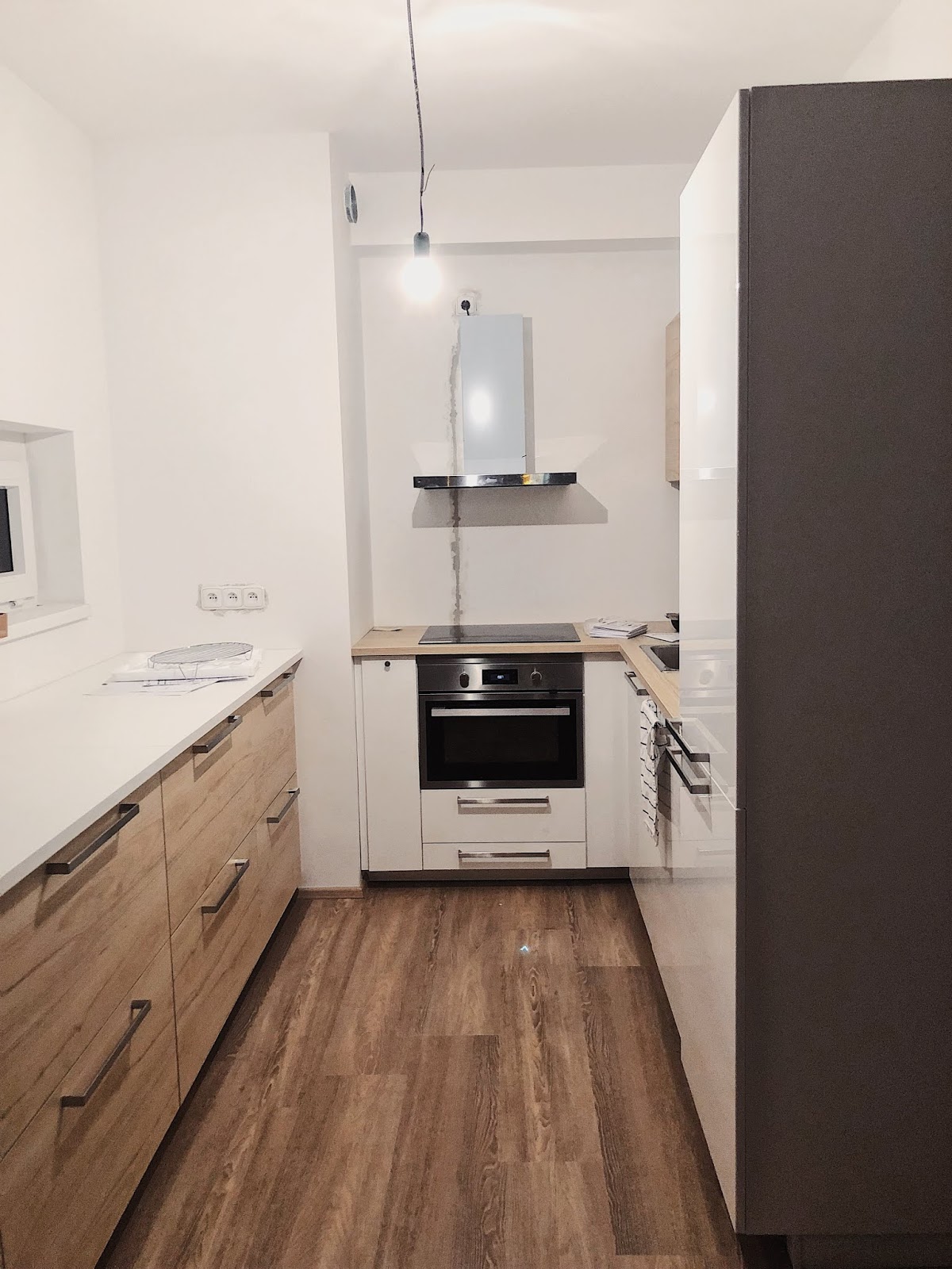 Další časovej trabl byl, že jsem potřebovala mít kuchyň postavenou než jsem odlítala do Thajska, aby tam brácha mohl fungovat, takže jsem na všechno měla deset dní. To bylo takový moje ultimátum od táty, když jsem se rozhodla navzdory jeho přání odletět na Vánoce pryč. Takže deset dní… S tím, že vy tu kuchyň koupíte, oni vám jí do pěti dnů dovezou a během dalších deseti namontujou. Takže jsem opět musela předbíhat a kuchyň jsem byla koupit JEŠTĚ PŘEDTÍM, než jsem se přestěhovali a než byla hotová podlaha. No a kdyby podlaháři dělali podlahu opravdu těch 7 dní, které byly ve smlouvě a ne jen 5, jak jsem se s nima domluvila, neměli by mi těch 145 krabic kam vyložit. Ale i to se naštěstí stihlo! Teď zpětně moc nechápu, že jsem to nakonec všechno odsouhlasila za takhle riskantních podmínek – co bych jako dělala, kdyby se to nestihlo?!