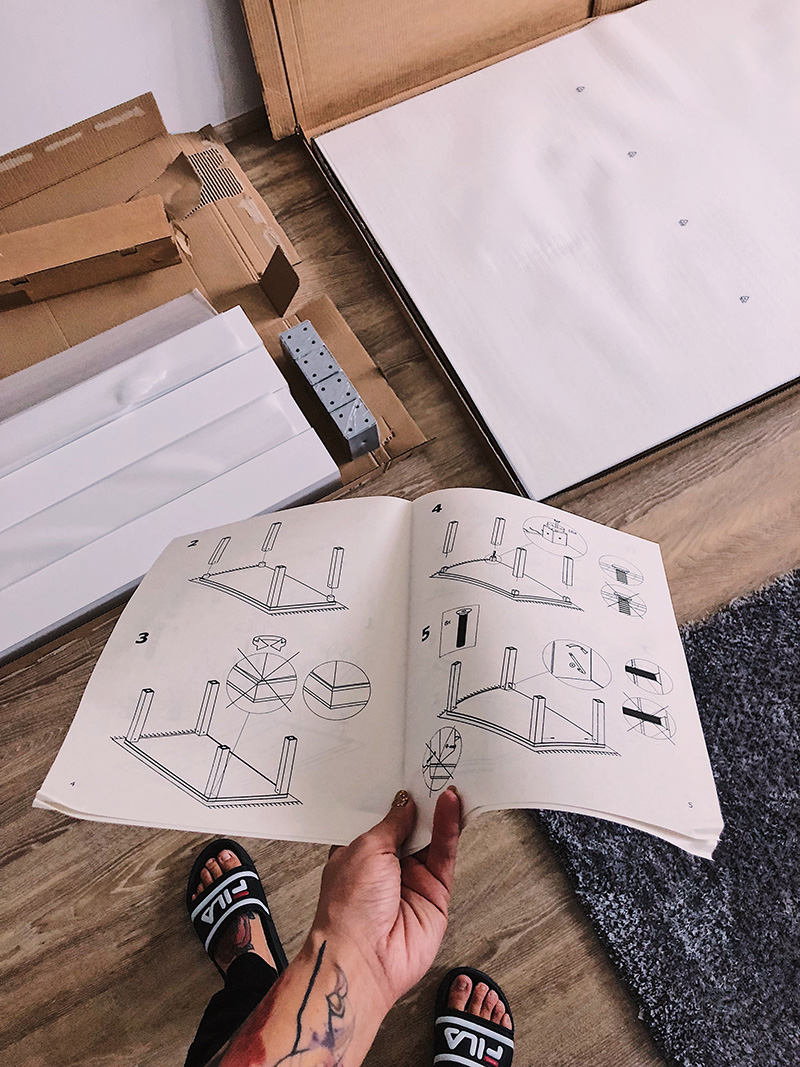 Ty dva týdny, kdy nebyla kuchyň, nebyl ani brácha, protože ten je (narozdíl ode mě) na kuchyni závislej. A tak jsem se do montérských prací pustila sama. Jasně, že jsem se bála, že něco poničím, ale hrozně jsem chtěla, aby to tam začalo vypadat aspoň trochu jako domov. Začala jsem – chytře – jednoduchým stolem a židlema, což se mi povedlo a hezky mě to uchlácholilo, že jsem šikovná a že to celý zvládnu i takhle sama. A tak jsem montovala dál a dál.