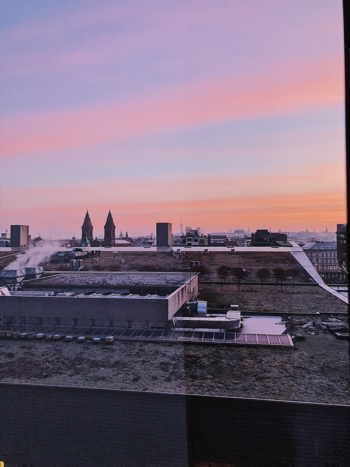 Tahle fotka pražskýho svítání tady není omylem, ale schválně. Nakonec jsem totiž jednu noc skončila na hotelu. Vinohradskej byt jsem už musela opustit a na novým bytě se pokládaly podlahy, tudíž jsme stěhování provedli tak, že se VŠECHNO převezlo do sklepa, kterej byl jako jeden velkej tetris a já nechápala, jak to potom zvládnu všechno vytahat do bytu. Nicméně se nedalo nic jinýho dělat, klíče od Vinohrad byly odevzdaný, veškerej můj majetek byl ve vymrzlým sklepě a já nocovala v Ibisu, kde mě ráno vyzvedli naši a jeli jsme na pár dní na hory. Odpočinout si, což jsem po tom stresu se vším fakt potřebovala.
