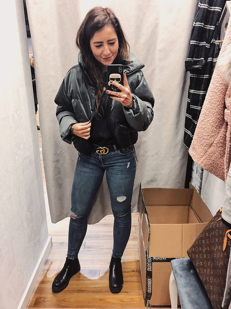 Můj život se vším oblečením v krabicích jsem řešila občasnýma nárazovýma nákupama a ve slevách se mi povedlo za čtyři stovky ukořistit třeba tuhle bundičku!