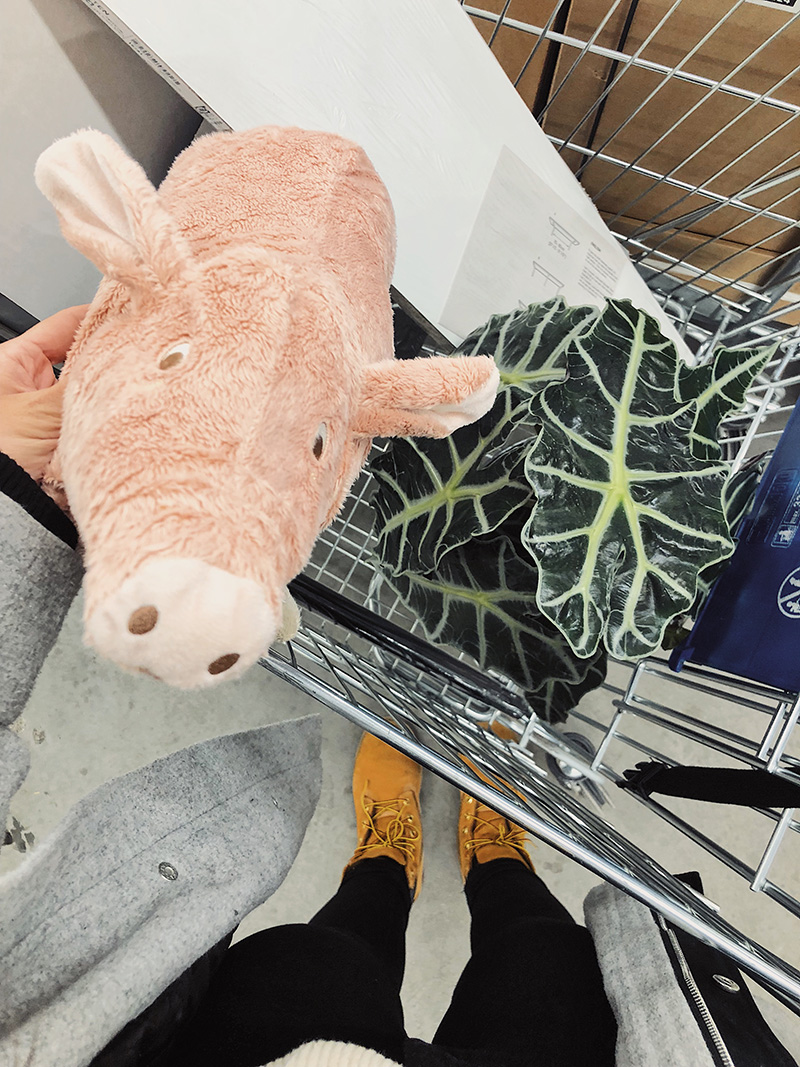 Když jsem na Stories vyfotila tenhle svůj nákup z Ikey, nemohla jsem se celej večer odtrhnout od telefonu, protože jste mi jeden před druhýho psali, že tohle prase (nebo jiný zvířátka) máte taky, jak je máte pojmenovaný a že s nima většinou spíte – a vaše polovičky taky. 😀