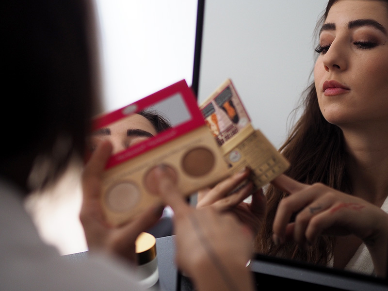 Veškerý produkty pudrový konzistence beru od theBalm, což určitě víte, pokud mě sledujete už delší dobu. Tahle značka je uplně top, nenašla jsem na ní jedinou chybu. Aktuálně od ní mám pudr (SexyMama), konturovací odstín (BahamaMama) a tvářenku (HotMama). Plus taky paletku stínů a rozjasňovač, kterej jsem na závěr tohoto looku taky využila.