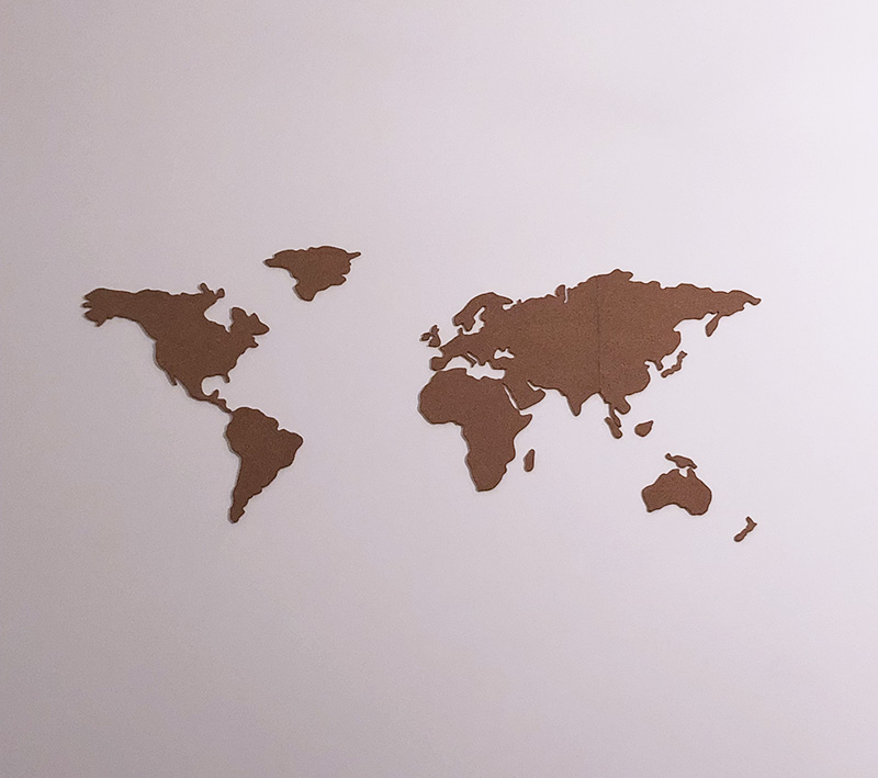 A první část mojí nejoblíbenější dekorace v ložnici už je taky ready. Korková mapa světa nalepená na zdi, čekající na to, až na ní napíchám špendlíky a přidám fotky z těch konkrétních míst.