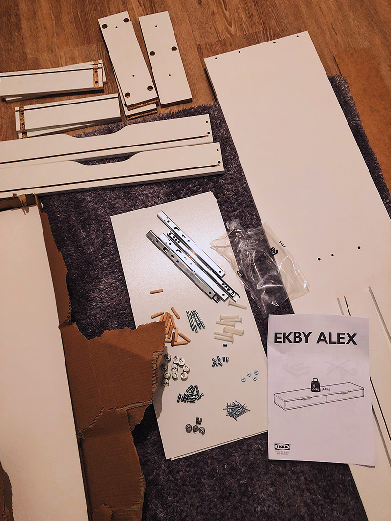 Tahle fotka je podle mého výrazu z tý první návštěvy. Ono si asi každej umíte představit, jak vyčerpávající je jeden nákup v Ikee, strávíte tam několik hodin a pak se fakt těšíte, až to doma vybalíte, sestavíte a budete si užívat novýho vybavení. Není uplně super, když unavení dojedete domů a zjistíte, že vám chybí nějaká zásadní věc, kvůli který tam musíte znova.