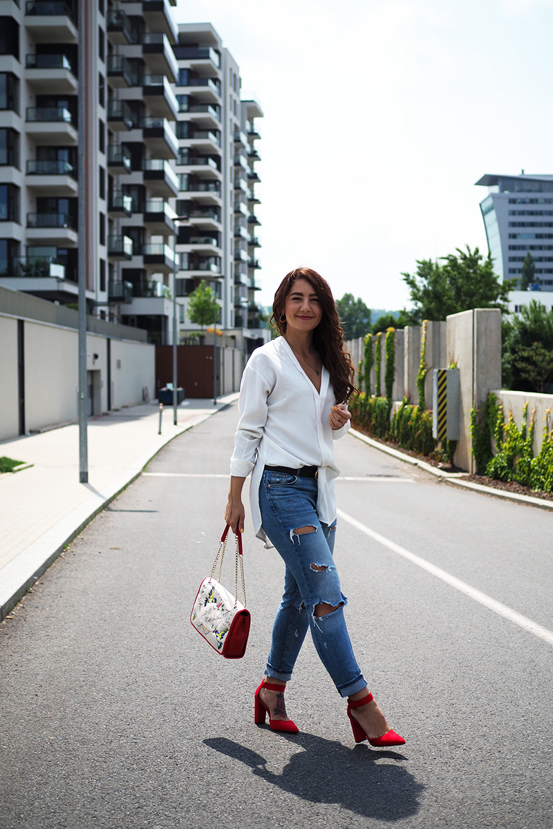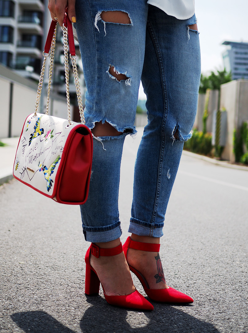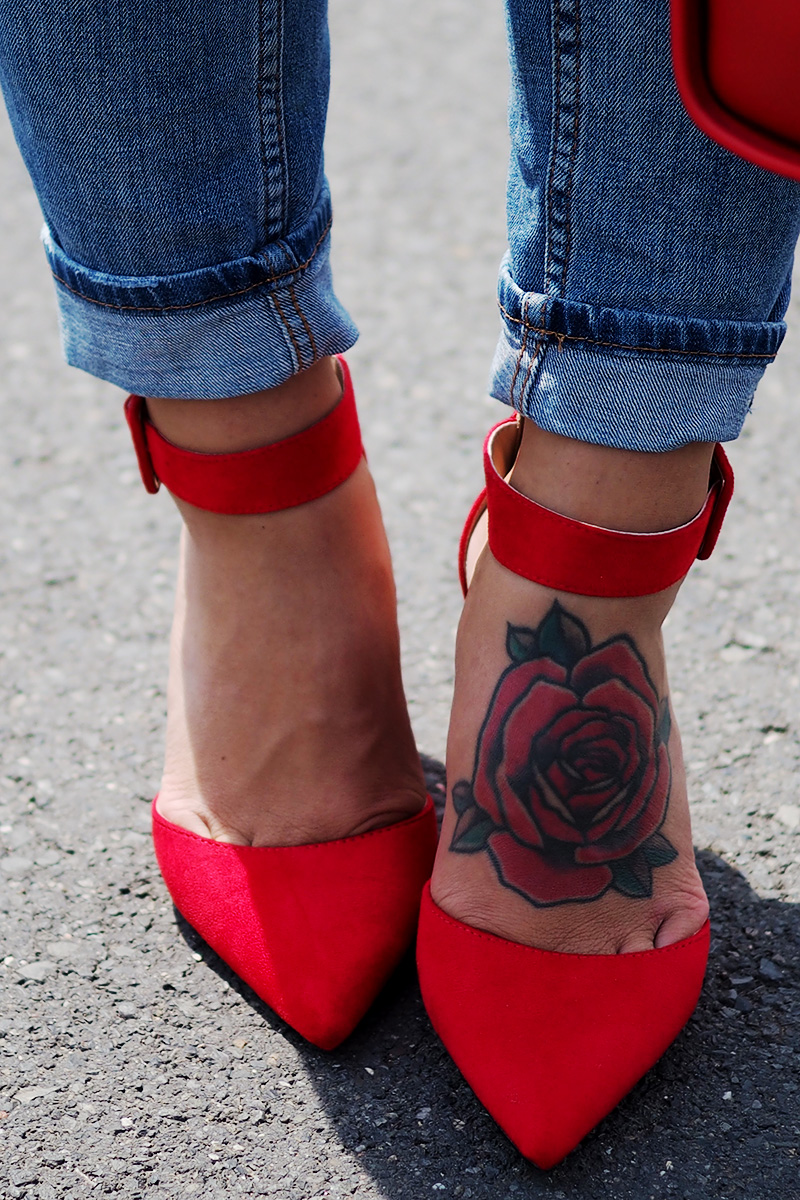 OdpovědětVymazatK outfitu: jednotlivý prvky se mi líbí všechny, ale kombinace bohužel. Barevně kombinovat kabelku a boty už je pasé, tím spíš, když se jedná o tak výraznou barvu, jako je červená. S rafinovanějším topem a jinou kabelkou by tyhle botičky i jeans mohly fungovat.