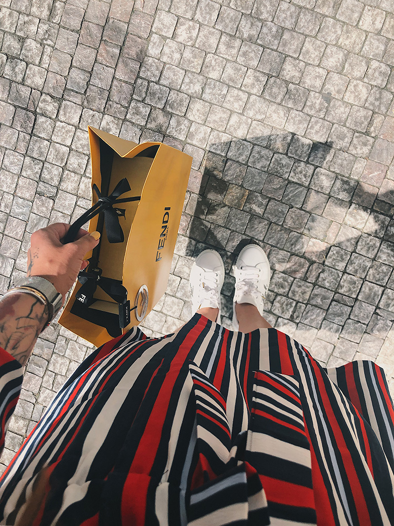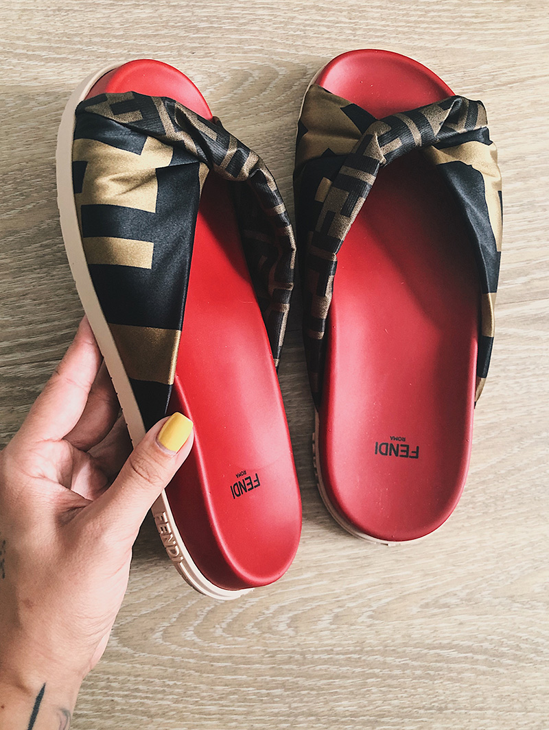 Letos jsem byla rozhodnutá koupit si nějaký pantoflíčky a s Alex jsme mi vybraly právě tyhle Fendi. Jednoduše kombinovatelný, neokoukaný, pohodlný a barevně přesně takový, jaký jsem si vysnila.