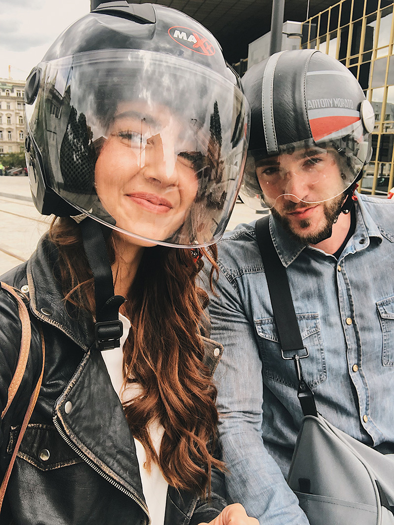 Konečně taky přišla sezóna pro Vespu. Miluju na ní jezdit Prahou a jestli vidím na Kubově blížícím-se-Erasmu jeden jedinej pozitivní aspekt, je to právě to, že Vespu dostanu do péče já.