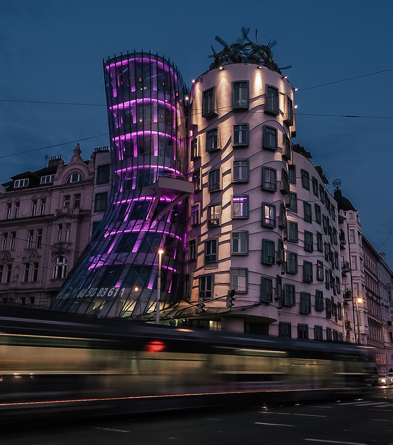Chci vám taky ukázat tyhle 3 záběry Tančícího domu, kterej jsem si takhle po večerech (pracovně) fotila a jsem z výsledku dost nadšená.