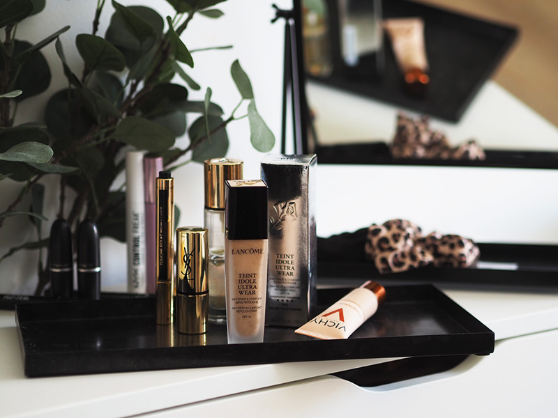Dalším hlavním prvkem je pak vždycky make-up, ten prostě musí sedět za každou cenu. Nikdy jsem neměla (a nedělám si naděje, že by mě to v budoucnu ještě mohlo potkat) bezproblémovou pleť, která vydrží v klidu bez jakýkoliv krycí vrstvy. Takže sjednocení potřebuju vždy. Pokud mám opravdu dobrej skin-day, používám make-up s lehoučkým krytím, což je Minéralblend od Vichy, ovšem většinou se líp cítím s větším krytím. A takový make-upy střídám během roku asi tři. V létě potřebuju, aby make-up opravdu kryl a přitom byl na pleti co nejlehčí, aby se rychle nezpotil a aby na pleti nedělal žádnou neplechu. Pravidelně se tak vracím k Lancôme Teint Idole Ultra Wear.