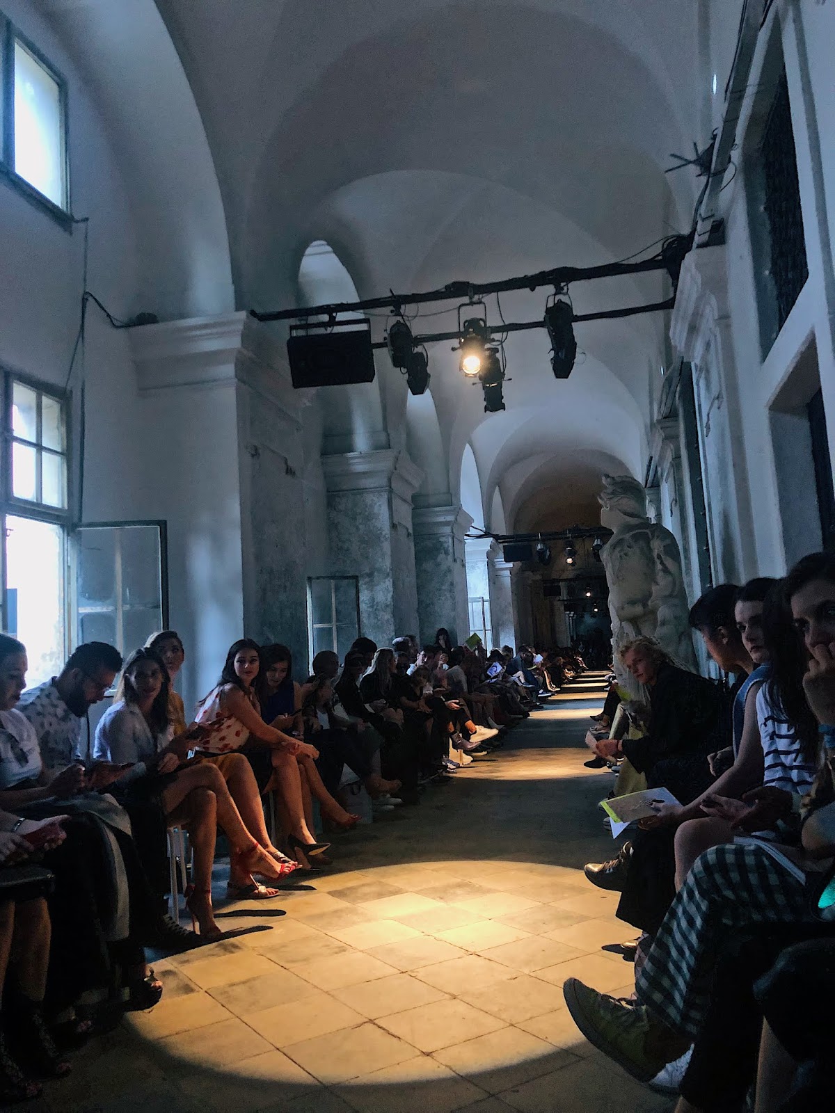Lokací byla letos Invalidovna. To znamená dlouhatánskou přehlídkovou chodbu, vysoký stropy a pošmournou, ale cool atmosféru. A taky parádní vnitroblock, kterej se hlavně v noci díky těm světýlkům změnil na naprosto magický místo.