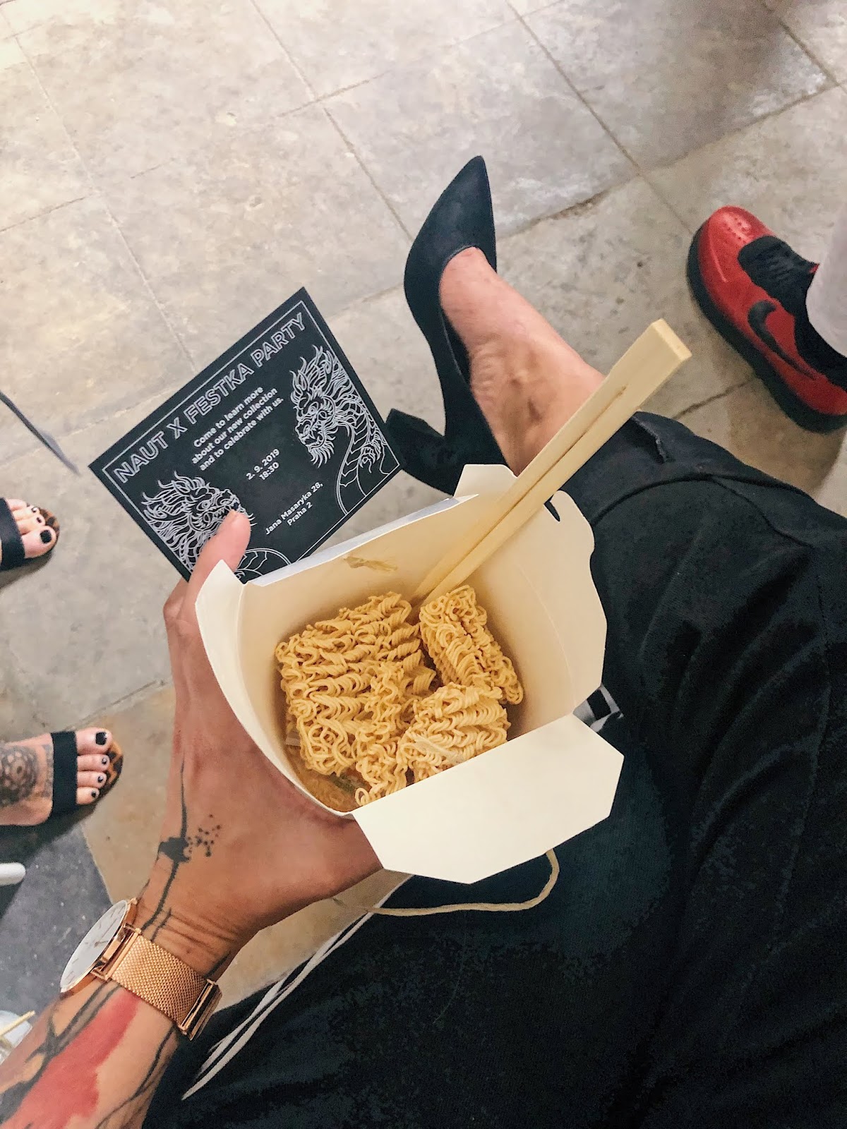 Můj pátej fashion week a i tak je náš vztah stále VELMI ambivalentní. Letos jsem si to víceméně užila, ale… No řekněme to takhle – nejen, že většinu lidí, co se fashion weeku neúčastněj, totálně rozčiluje, že na instastories nenajdou po 5 dní nic jinýho než šílený módní kreace návštěvníků a ještě šílenější kreace návrhářů – ale nakonec i 80 % těch návštěvníků má podle mě totální nervy. Včera jsem se potkala na akci s Vaness, která nejen, že přehlídky chodí, ale i když přijde jako návštěvník, vypadá jak vystřižená z módního magazínu a stejně měla uplně stejný dojmy jako já a spousta dalších holek, se kterýma jsem tohle téma otevřela. Takový to, kdy někam přijdete a máte okamžitě dojem, že tam vůbec, ale vůbec nemáte co dělat a nejradši byste se otočili na patě a zmizeli domů. Máte pocit, že vás každej hodnotí a že pokud nemáte na nose Dior brejle, na nohách Balenciagy a na každou přehlídku jinej outfit od návrháře, jste uplně marní. Velmi pravděpodobně to tak vůbec není a tohle kritický oko mají jen streetstyle fotografové, co si tam lověj svoje ultra cool záběry, reálně si vás nikdo nevšimne, když nejste výrazně oblečení a ten blbej pocit z toho prostě máte jen vy. Pokud ho ale zvládnete překonat, zjistíte, že je to celý uplná pecka. Já už jsem přišla na to, že je lepší si na nic nehrát a nepatlat zbytečně dohromady outfity, ve kterých se budu cítit nesvá. Takže jsem většinou nenápadnej účastník, ale taky spokojenej účastník. Vzhledem k tomu, že jsem si k tomu neplánovala ani žádný outfitový focení, mám pro vás v tomhle článku spíš takovou všehochuť a spoustu fotek z telefonu jen tak na přiblížení tý atmosféry, pokud jste ji ještě nestihli nasát na všech těch Instagramech.