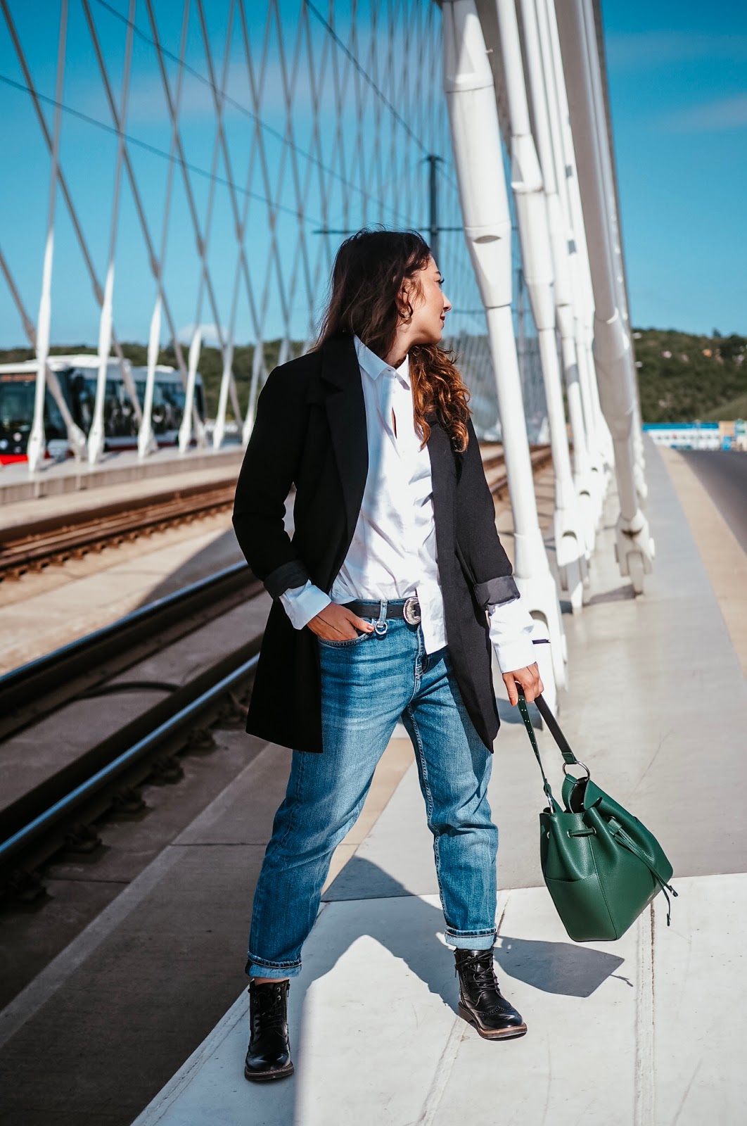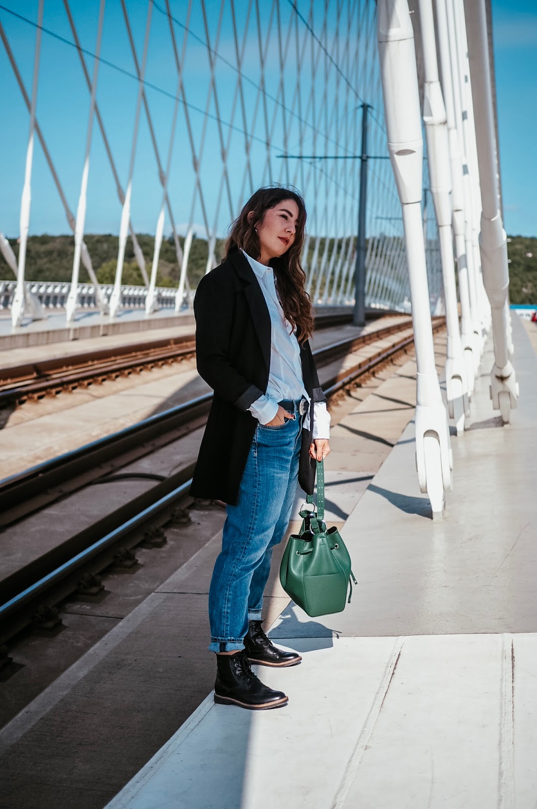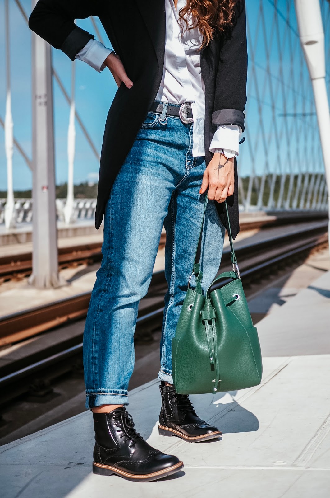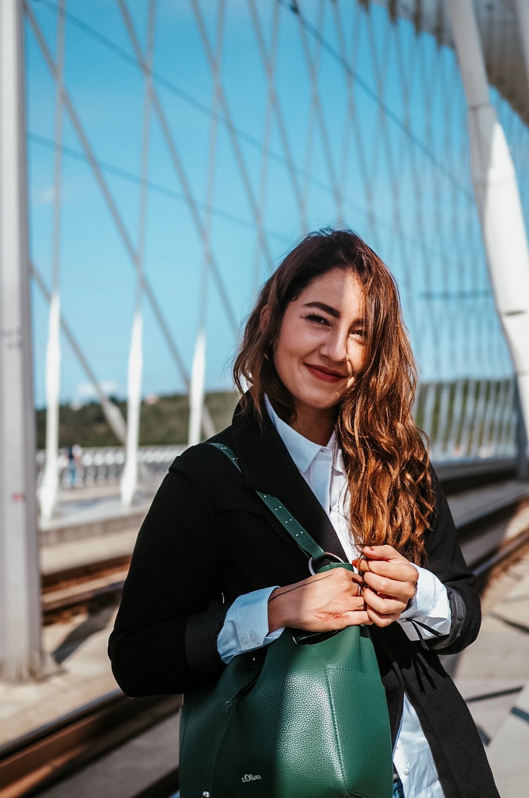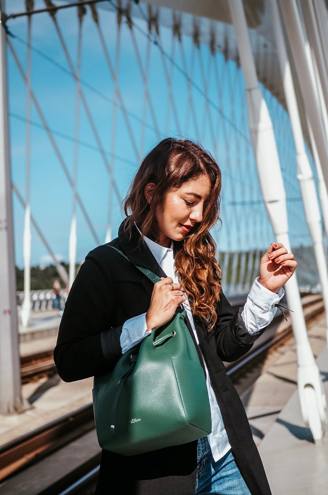 Well, we will see about that. A protože samostatnej outfit post tady nebyl už pěkně dlouho, můžem se věnovat i tomu, co jsem vám to vlastně fotila a proč. Zahájila jsem dlouhodobou spolupráci se značkou s’Oliver a tohle je první outfit, kterej jsem si u nich poskládala – respektive je od nich košile, kalhoty, boty a kabelka. Ta kabelka je mimochodem můj aktuálně nejoblíbenější kousek v šatníku, protože žádnej takovejhle bucket bag jsem doteď neměla a netušila jsem, jak praktický a zároveň stylový to je. A aspoň s sebou výjimečně netahám notebook.