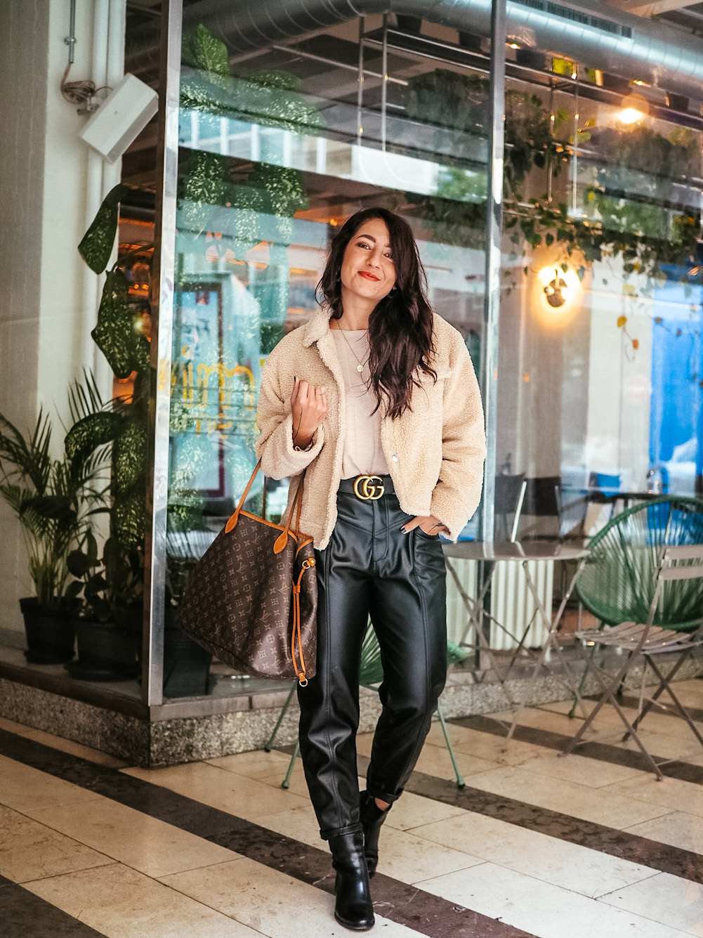 Tenhle podzim je pro mě – vlastně stejně jako loni – obdobím plným změn a to nejen vizuálních, ale i pracovních. Loni jsem se k tomu teda ještě navíc rozešla a stěhovala se do vlastního bytu, ale to už asi – DOUFÁM – nepřebiju. I tak je ale tenhle podzim docela výživnej. Třeba včera jsem byla zas pro změnu o hodně dál, než je linie mojí komfortní zóny, dělala jsem videoreportáž na konferenci a pár rozhovorů s přednášejícíma. Strašně se těším (a bojím teda taky :D), až to bude venku, abych vám to mohla nasdílet a napsat k tomu všechny svý dojmy. Nechám si to ale opravdu na to, až budu mít všechno u sebe a dnes bych vám ráda ukázala aspoň jeden novej outfit. Koženkový kalhoty jsem se snažila sehnat už minulej rok, ale upnutý prostě na mojí postavu zrovna dvakrát hezký nejsou a tyhle (ze Zary) mě dostaly volnějším střihem a vysokým pasem, díky kterýmu jsou super i s crop topem, ale na ten už je teď dost zima, zvlášť pokud nosíte – stejně jako já – bundy a kabáty, co vypadaj líp rozepnutý, pokud vůbec zapnout jdou, že jo. 😀