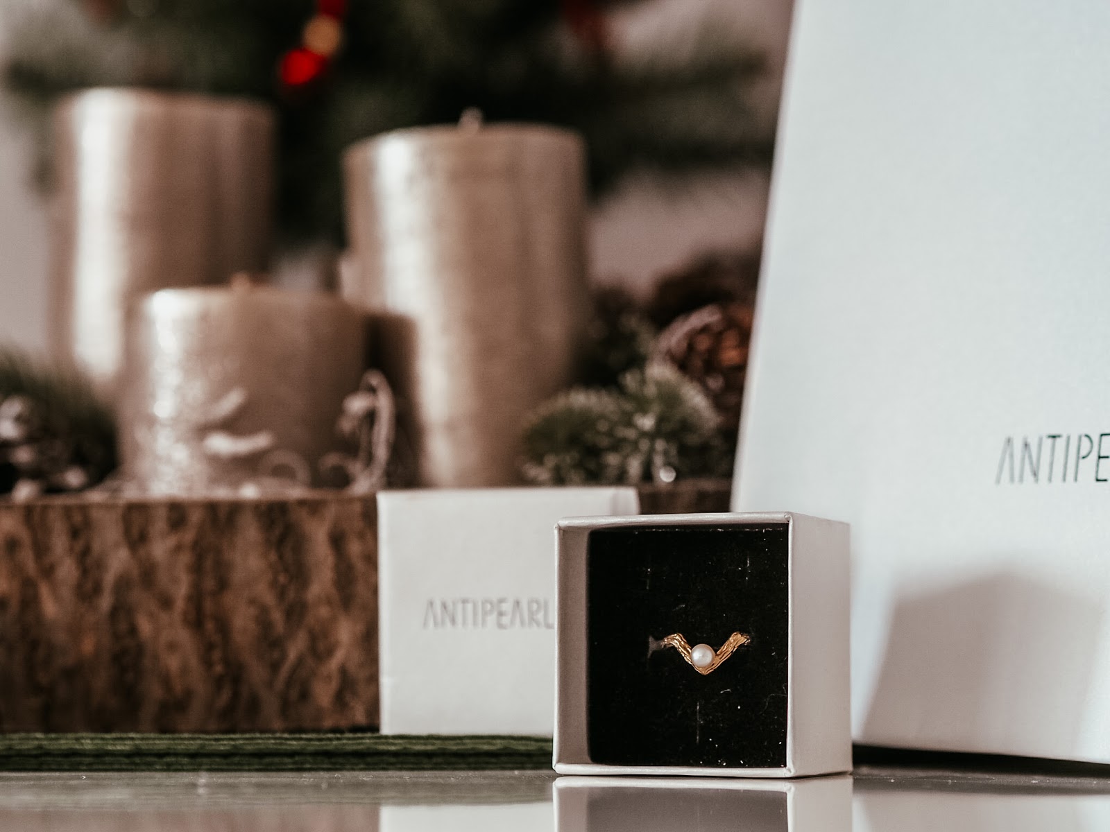Druhou mojí materiální radostí je Antipearle prsten. Tuhle značku jsem měla na wishlistu dlouho a po náročným pracovním listopadu a prosinci jsem si řekla, že si ho zasloužím. Tenhle byl rovnou k dispozici, tak jsem ho vzala a druhej je právě ve výrobě a těším se na něj v lednu.