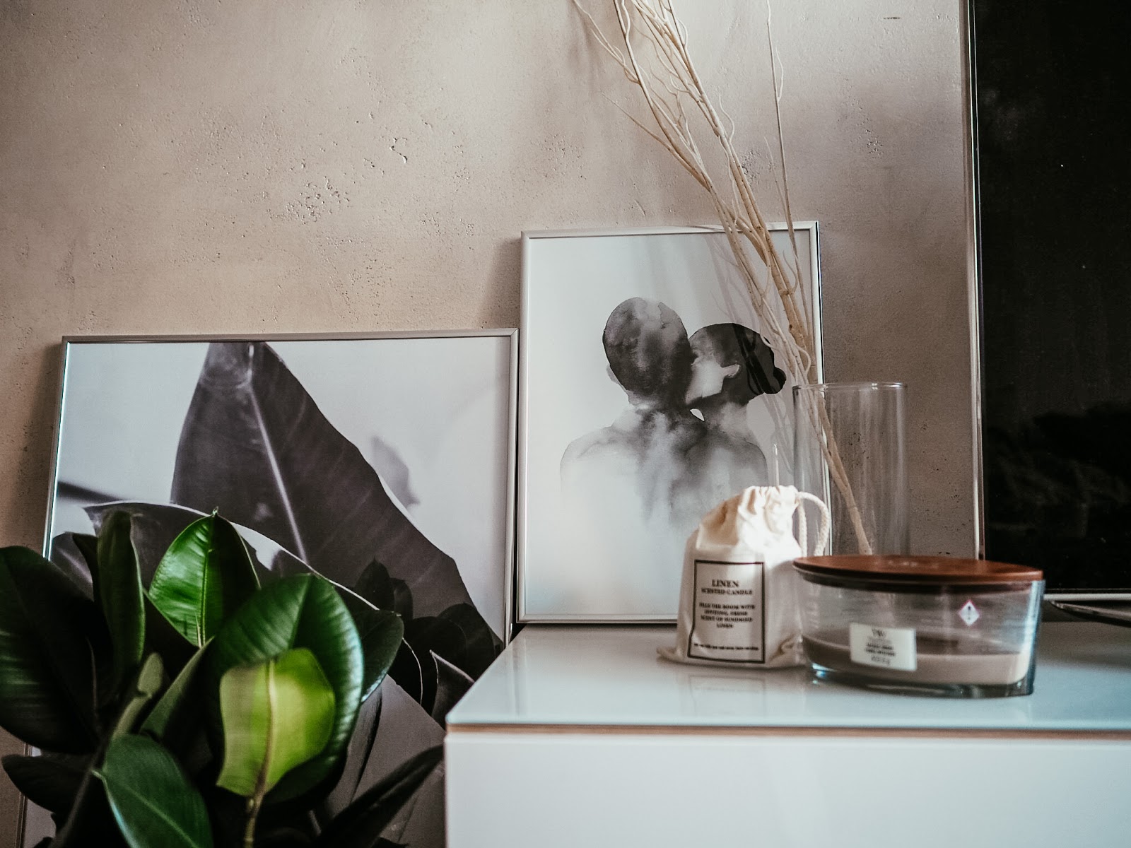 Kytky, svíčky a obrazy ve velkejch rámech. To je pro mě naprostej základ co se týká dekorací. Už když jsem firmu Desenio zaregistrovala díky spolupráci s jinýma blogerkama, strávila jsem na jejich webu několik hodin vybíráním toho, co bych si představovala u sebe doma. Měla jsem vybraný obrazy do všech místností a když pak přišla nabídka na spolupráci i mně, měla jsem chuť na vítěznej taneček a strávila tam dalších několik hodin. Svůj budget jsem využila do posledního halíře a ještě si udělala jednu objednávku navíc.
