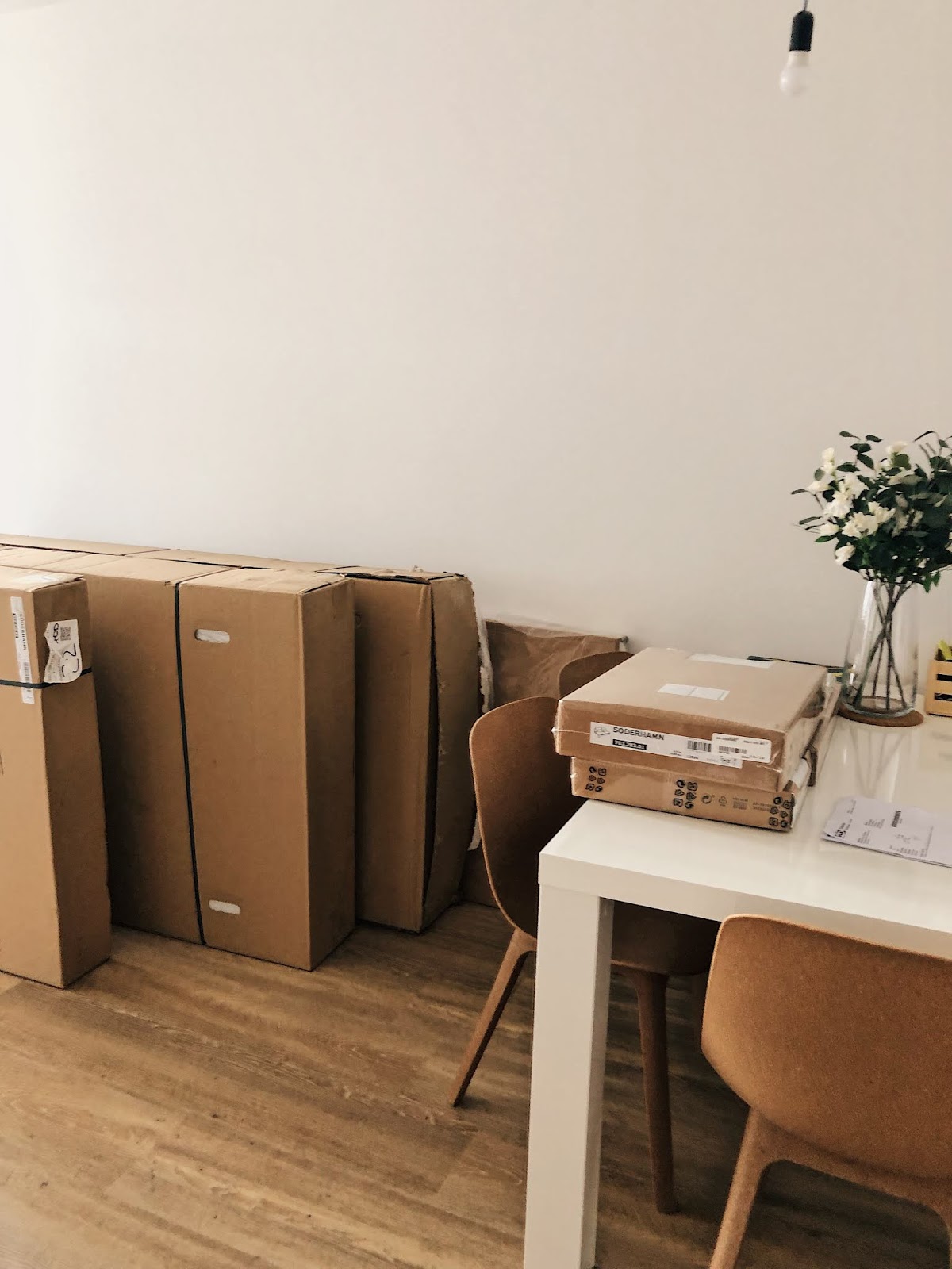 Druhá strana obýváku – sedačka. Ta vysněná obří přes celou místnost. Byla jsem v Ikee “osedávat” sedačky asi 8x. Pokaždý jsem odcházela smutná s tím, že chci tu nejdražší, co tam maj a že na ni budu šetřit další rok. Pak jsem ale našla její levnější ségru a bylo jasno. Objednala jsem si přesně ty moduly, jaký jsem chtěla a bez konzultace s kýmkoliv jsem sáhla po nepraktický bílý barvě.