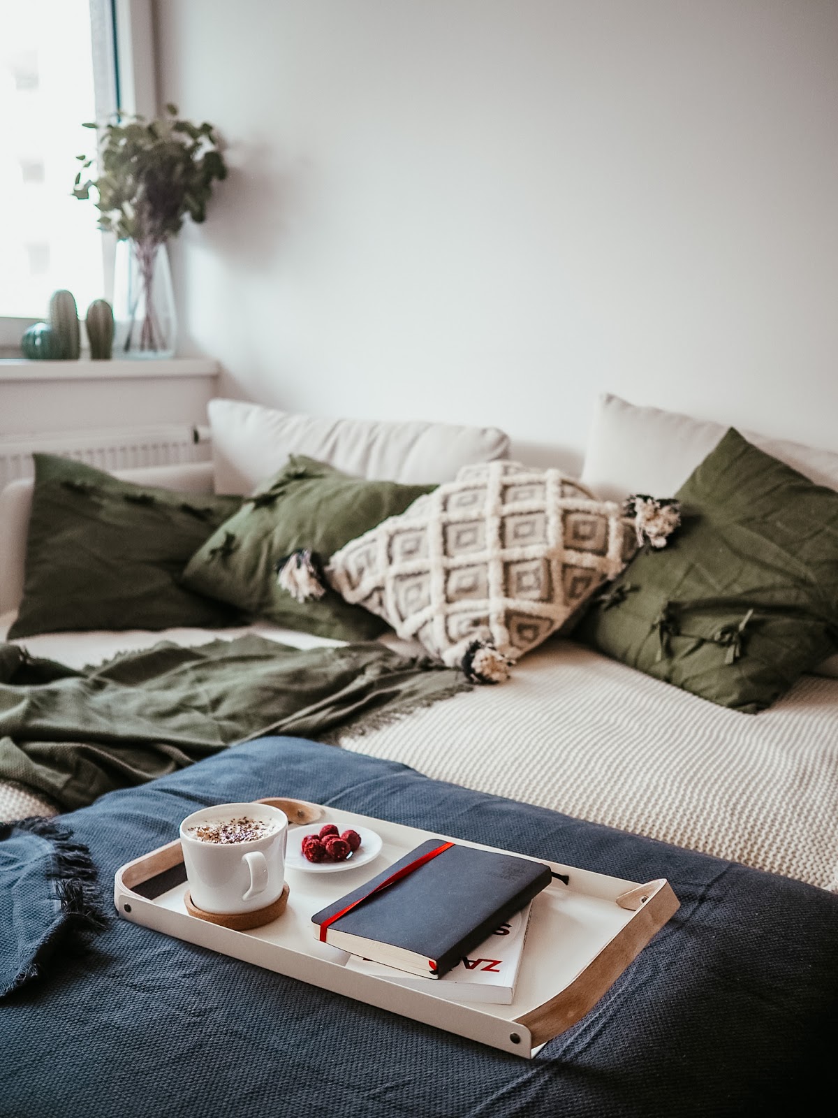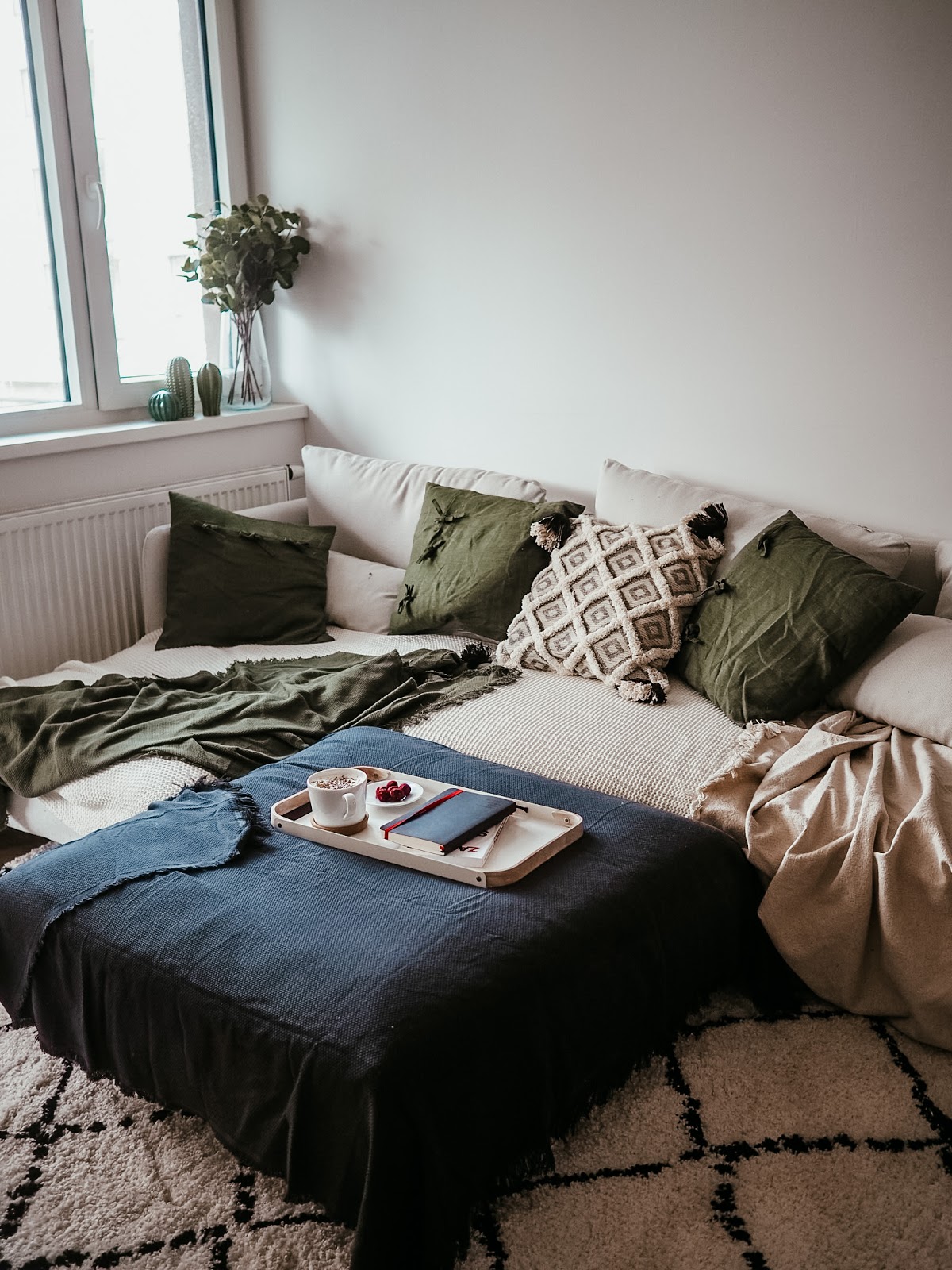 To, že bílá látková sedačka nebyl uplně nejlepší nápad, mi došlo hned druhej den, když jsem se při každým sednutí bála, abych jí nezašpinila a představa, že bych tady jedla svoje oblíbený mražený maliny byla nemyslitelná. No nic, pořídím deky. Stejně byl nejvyšší čas pustit se do dekorací a těch útulnejch maličkostí, co tomu opravdu dodaj atmosféru. Jako takhle, mně by se líbil minimalistickej byt. Ale já prostě minimalista bejt neumim. A svoje hnízdo chci mít útulný a cítit se tam dobře, ne jako v hotelovým pokoji. Tak jsem se do toho pustila…