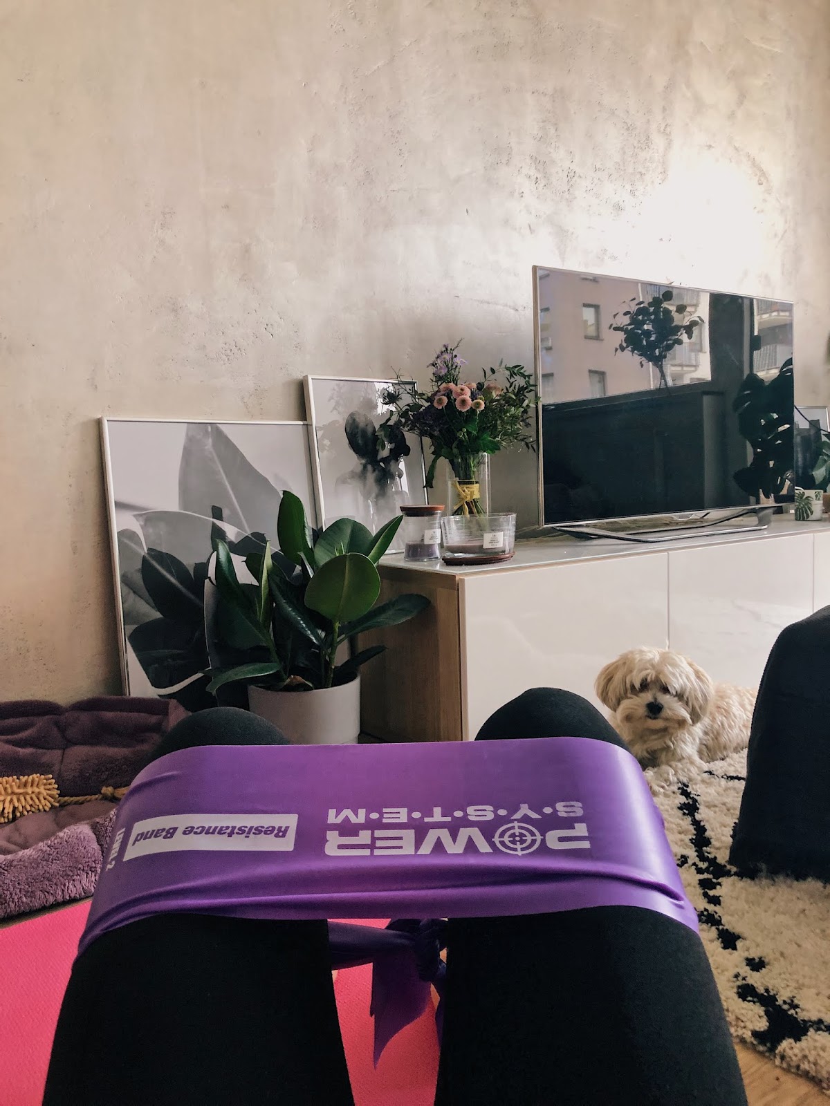 Dokopat se ke cvičení doma pro mě byl velkej problém. Když jsem se k tomu po týdnu rozhodla, vyvrtla jsem si kotník a tak bylo cvičení zase odloženo. Nakonec jsem ale sama uznala, že mi nějaký zapojení svalů chybí a že by se – vzhledem k tomu, že furt vařím a peču a jím – hodilo, abych trochu hnula zadkem a nějak to vyvážila. Začala jsem ranním poledním jógovým protažením, který mě nastartovalo a donutilo začít nějak fungovat. A postupně jsem přidala i posilování. Z Aktinu jsem si na začátku karantény prozíravě objednala rezistence bands (prostě gumičky) a našla jsem si s nima několik videí, podle kterých pravidelně cvičím. Doporučuju třeba tohle na zadek od Péti nebo tohle full-body. A začalo mě to bavit. Na závěr (nebo na začátek) se navíc většinou zaseknu na nějaký písničce a prostě si tancuju, což je vlastně super zábavný kardio. Neříkám, že se netěším na stroje do fitka, ale jsem si celkem jistá, že u cvičení doma částečně zůstanu i po odeznění nouzovýho stavu.